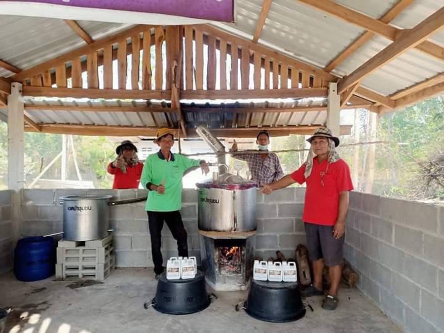 ทั้งนี้ ภายใต้แนวคิดในการพัฒนาชุมชนโดยใช้หลักเศรษฐกิจพอเพียง ทีมวิจัยได้ดำเนินโครงการถ่ายทอดองค์ความรู้และเทคโนโลยีดังกล่าวให้กับชุมชนใกล้เคียงที่ด้อยโอกาสทางเทคโนโลยี เพื่อพัฒนาทักษะอาชีพของเกษตรในรูปแบบของกลุ่มเกษตร ให้เกิดความเท่าเทียมทางการใช้เทคโนโลยีที่ไม่เป็นอันตรายต่อเกษตรกรและผู้บริโภค รวมทั้งสามารถลดค่าใช้จ่ายในกระบวนการผลิต ปัจจุบันสามารถสร้างศูนย์เรียนรู้และศูนย์การผลิตไอน้ำสมุนไพร ได้ 3 ชุมชนในตำบลหนองโรง อำเภอพนมทวน จังหวัดกาญจนบุรี คือ ชุมชนพึ่งตนเองบ้านนาพระยา กลุ่มบ้านหนองสำโรงพัฒนา และป่าชุมชนบ้านห้วยสะพานสามัคคี