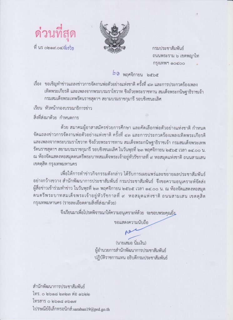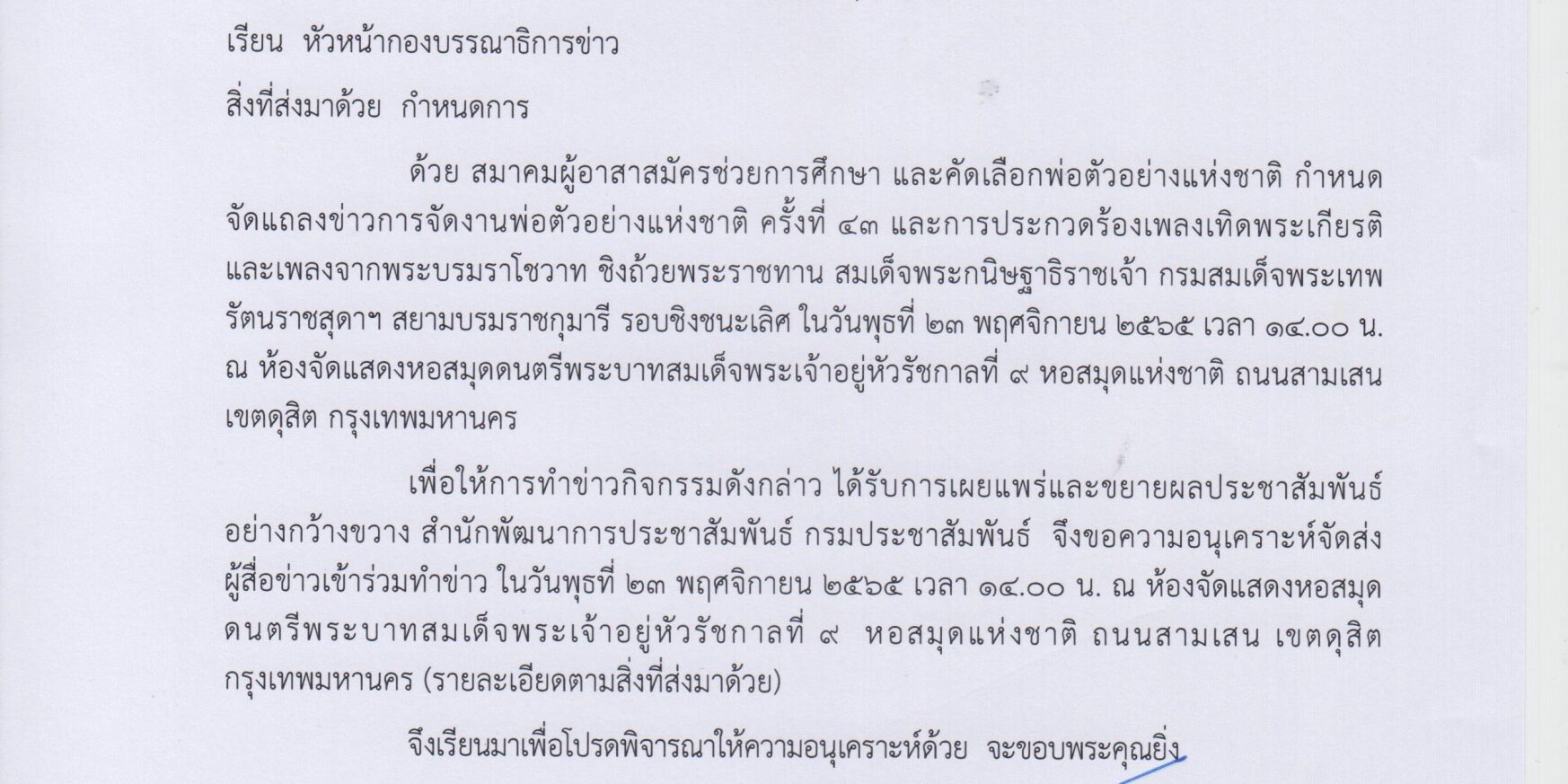 ขอเชิญสื่อมวลชนร่วมทำข่าว แถลงข่าวการจัดงานพ่อตัวอย่างแห่งชาติ ครั้งที่ 43