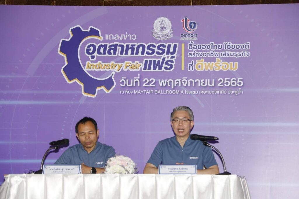 วันที่ 22 พฤศจิกายน 2565 เวลา 14.00-16.30 น.ณ ห้องเมย์แฟร์ บอลรูม เอ โรงแรม เดอะ เบอร์เคลีย์ ประตูน้ำ กรุงเทพฯ : กระทรวงอุตสาหกรรม เตรียมเปิดพื้นที่จัดงานอุตสาหกรรมแฟร์ “ซื้อของไทย ใช้ของดี สร้างอาชีพ เสริมธุรกิจที่ดีพร้อม” มหกรรมสินค้าเสริมแกร่งเศรษฐกิจฐานราก ซึ่งจัดขึ้นในวันที่ 1-4 ธันวาคม 2565 ณ อาคารเอ็กซิบิชั่น ฮอลล์ 9–12 ศูนย์แสดงสินค้าและการประชุม อิมแพ็ค เมืองทองธานี โชว์ผลสำเร็จฝึกทักษะอาชีพดีพร้อมให้ประชาชน ถึง 7 แสนคน พร้อมยกทัพผู้ประกอบการร่วมงานกว่า 1,200 ร้านค้า หวังเป็นตลาดไอเดียต่อยอดธุรกิจ สำหรับผู้ผ่านการฝึกอบรมอาชีพดีพร้อม และช่วยประชาชนทั่วไปซื้อสินค้าดี ราคาถูก ลดค่าครองชีพ คาดเงินสะพัดในงานไม่ต่ำกว่า 500 ล้านบาท