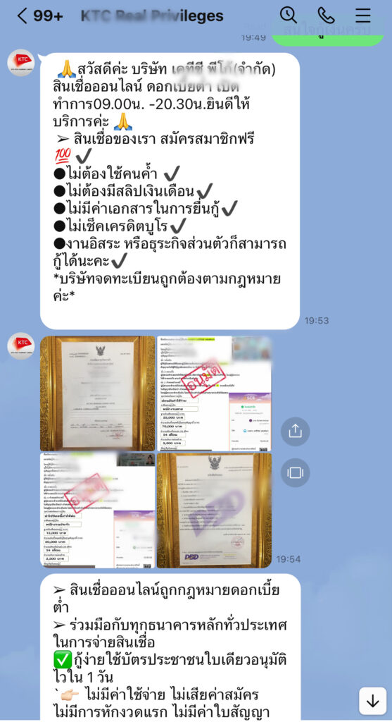 4.ข้อความชวนเชื่อว่า กู้ง่าย ได้เร็ว ดอกเบี้ยต่ำ ใช้เอกสารน้อย ไม่ต้องมีหลักประกัน ติดแบล็กลิสต์ก็กู้ได้