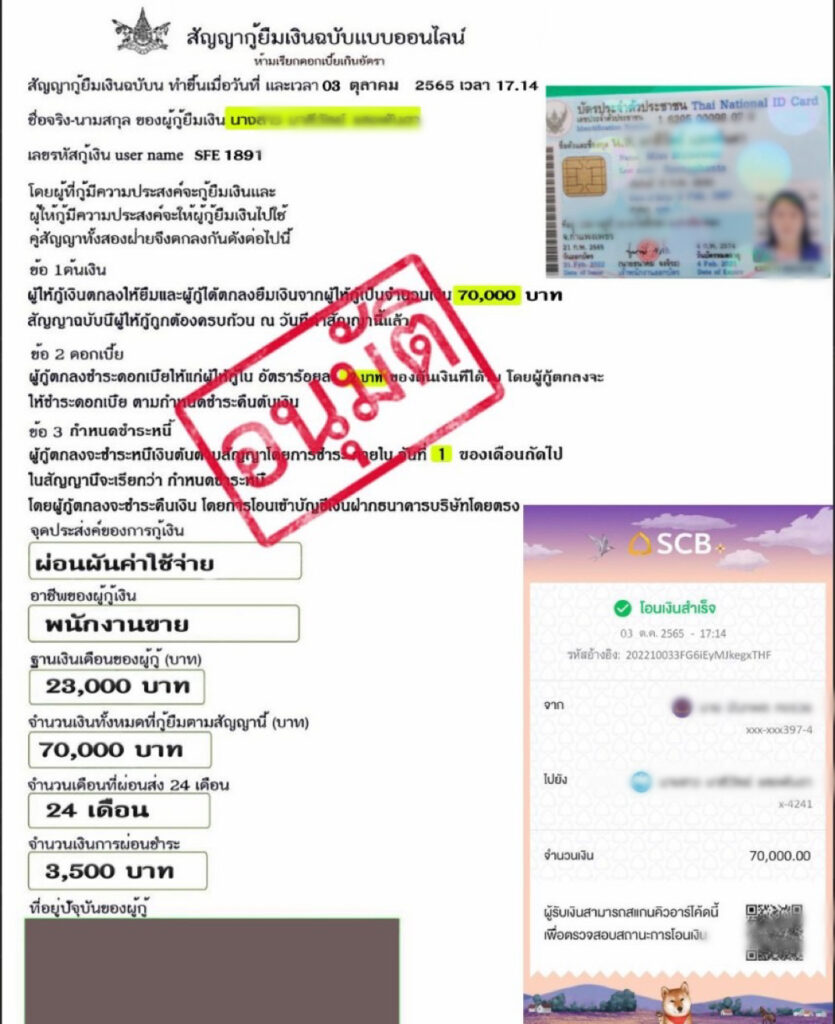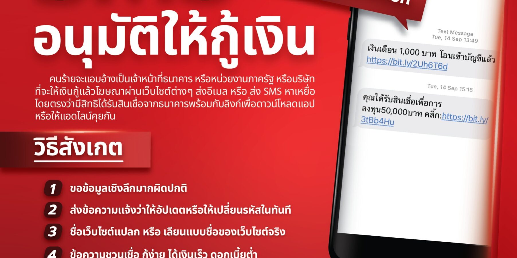 พล.ต.ต.อาชยนฯ กล่าวว่า ได้รับการร้องเรียนจากประชาชนมายังสายด่วนไซเบอร์ 1441 ว่าพบ พฤติการณ์คนร้ายแอบอ้างเป็นเจ้าหน้าที่ธนาคาร หรือหน่วยงานภาครัฐ หรือบริษัทที่จะให้เงินกู้ แล้วโฆษณาผ่านเว็บไซต์ต่างๆ ส่งอีเมล หรือ ส่ง SMS หาเหยื่อโดยตรงว่ามีสิทธิ์ได้รับสินเชื่อจากธนาคารพร้อมกับลิงก์เพื่อดาวน์โหลดแอป หรือให้แอดไลน์คุยกัน นอกจากไม่ได้เงินแล้ว ยังเสียเงินโดนหลอกเอาเงินประกัน หรือ เงินค่าดำเนินการจากเหยื่อ ซึ่งได้มีการประชาสัมพันธ์เตือนภัยเป็นระยะ แต่พบว่า กลับมาระบาดหนักอีกในระยะนี้ มักอ้างกับกลุ่มบริษัทสินเชื่อภายใต้การกำกับดูแลของธนาคารแห่งประเทศไทย หรือกระทรวงการคลัง