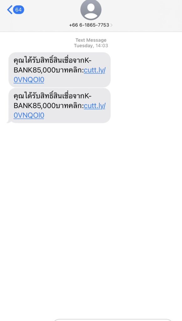 5.ไม่รู้ว่าผู้ส่งคือใคร เมื่อได้รับ SMS แปลกๆ ที่ส่งมาชวนกู้เงิน อย่ารีบกดลิงก์หรือกรอกข้อมูล ควรเช็คให้ชัวร์ก่อน จะได้ไม่ถูกเอาเปรียบหรือหลอกลวง