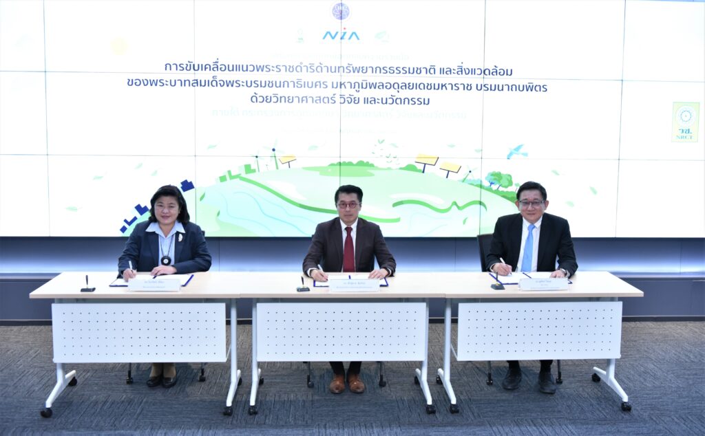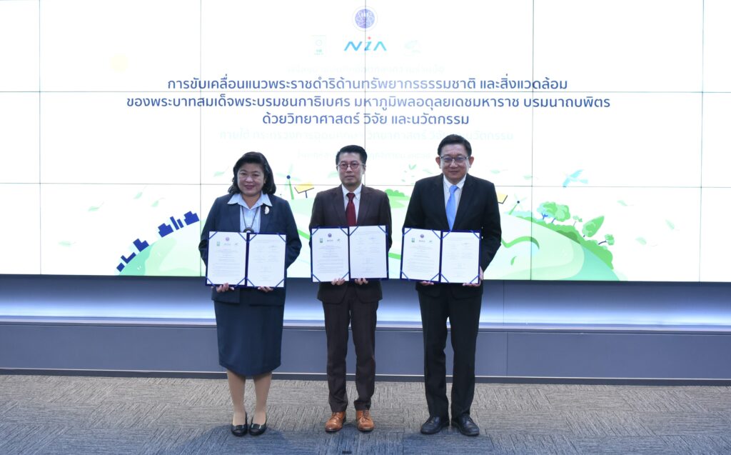 วันที่ 24 พ.ย.65 : กระทรวงการอุดมศึกษา วิทยาศาสตร์ วิจัยและนวัตกรรม (อว.) โดย สำนักงานการวิจัยแห่งชาติ (วช.) สำนักงานนวัตกรรมแห่งชาติ (องค์การมหาชน) (สนช.) หรือ NIA และสถาบันสารสนเทศทรัพยากรน้ำ (องค์การมหาชน) (สสน.) ร่วมกันลงนามความร่วมมือ “การขับเคลื่อนแนวพระราชดำริด้านทรัพยากรธรรมชาติและสิ่งแวดล้อม ของพระบาทสมเด็จพระบรมชนกาธิเบศร มหาภูมิพลอดุยเดชมหาราช บรมนาถบพิตร ด้วยวิทยาศาสตร์ วิจัย และนวัตกรรม” เพื่อเชื่อมโยงหน่วยงานภายใต้กระทรวง (อว.) ให้ร่วมกันสืบสาน รักษา ต่อยอดแนวพระราชดำริ พร้อมการส่งเสริม ผลักดันงานวิจัย และนวัตกรรมไปสู่การใช้ประโยชน์อย่างเป็นรูปธรรม รวมถึงการยกระดับทักษะเทคโนโลยีและความสามารถทางนวัตกรรมของกลุ่มเป้าหมาย