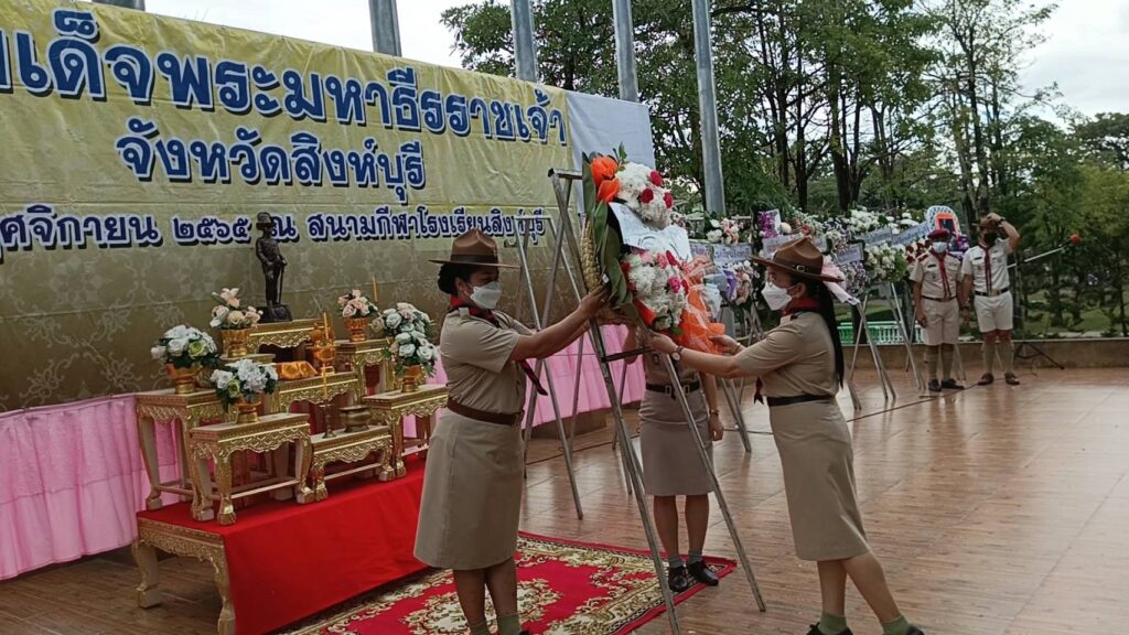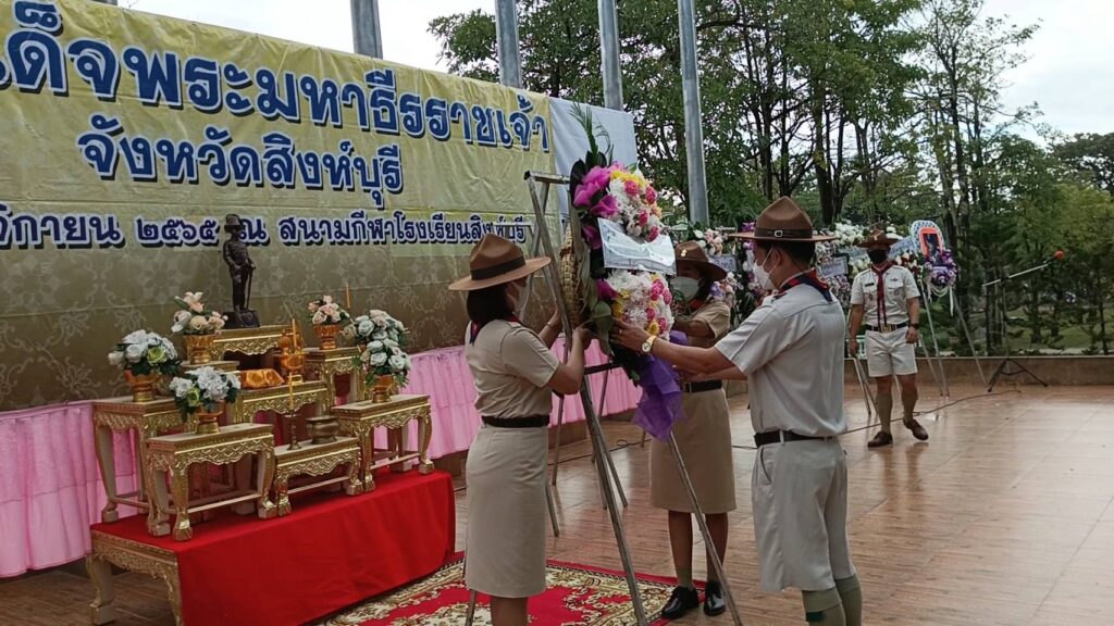 วันที่ 25 พฤศจิกายน 2565 เวลา 9.00 น.นายสุพจน์ ยศสิงห์คำ ผู้ว่าราชการจังหวัดสิงห์บุรีในฐานะผู้อำนวยการลูกเสือจังหวัดสิงห์บุรี เป็นประธานพิธีวางพวงมาลาและถวายราชสดุดี เนื่องในวันสมเด็จพระมหาธีรราชเจ้า เป็นวันคล้ายวันสวรรคตของพระบาทสมเด็จพระปรเมนทรมหาวชิราวุธ พระมงกุฏเกล้าเจ้าอยู่หัว พระราชทานกำเนิดลูกเสือไทย ณ โดมโรงเรียนสิงห์บุรี โดยมีนายสยาม สุ่มงาม รองผู้อำนวยการลูกเสือเขตพื้นที่การศึกษาสิงห์บุรี ผู้บังคับบัญชากองลูกเสือ เนตรนารี หน่วยงาน สถานศึกษาต่างทุกสังกัดในจังหวัดสิงห์บุรี เข้าร่วมประกอบพิธีวางพวงมาลาและถวายราชสดุดี ในนาม”คณะลูกเสือจังหวัดสิงห์บุรี”จากสำนักงานศึกษาธิการจังหวัดสิงห์บุรี ศูนย์การศึกษานอกระบบและการศึกษาตามอัธยาศัยจังหวัด สำนักงานเขตพื้นที่การศึกษามัธยมศึกษาสิงห์บุรี-อ่างทอง องค์กรปกครองส่วนท้องถิ่น อาชีวศึกษาจังหวัด สำนักงานคณะกรรมการเลือกตั้งประจำจังหวัด สโมสรลูกเสือ เสือเมืองสิงห์ สมาคมสโมสรลูกเสือจังหวัดสิงห์บุรี และสำนักงานเขตพื้นที่การศึกษาประถมศึกษาสิงห์บุรี รวมทั้งสิ้นประมาณ 1,000 คน