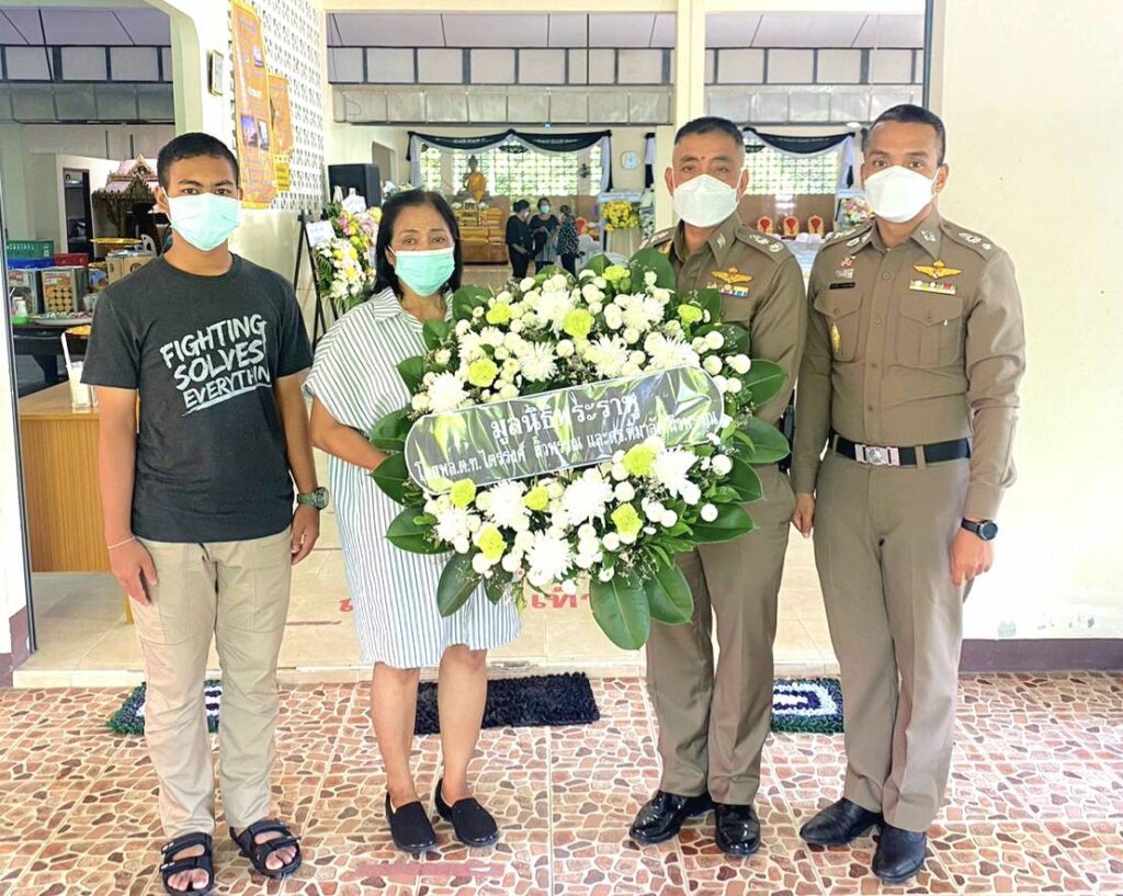ทั้งนี้ พล.ต.ต.อาชาน จันทร์ศิริ ผบก.กค.ภ.9 ได้มอบพวงหรีดเพื่อแสดงความเสียใจและมอบเงินร่วมทำบุญ ในนาม “มูลนิธิพระราหู” พร้อมพูดคุยให้กำลังใจกับภรรยาและบุตรชายของ”ผู้กองอ๊อด”หรือ ร.ต.อ.สุทธิรักษ์ พันธนิยะ วีรบุรุษผู้วายชนม์ ตามโครงการ “ส่งเสริมคนดี มูลนิธิพระราหู”
