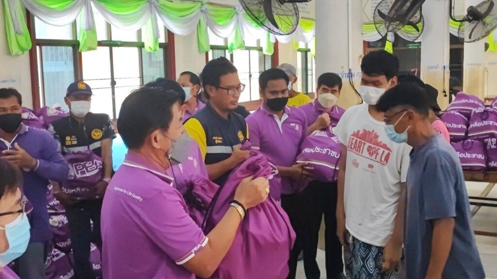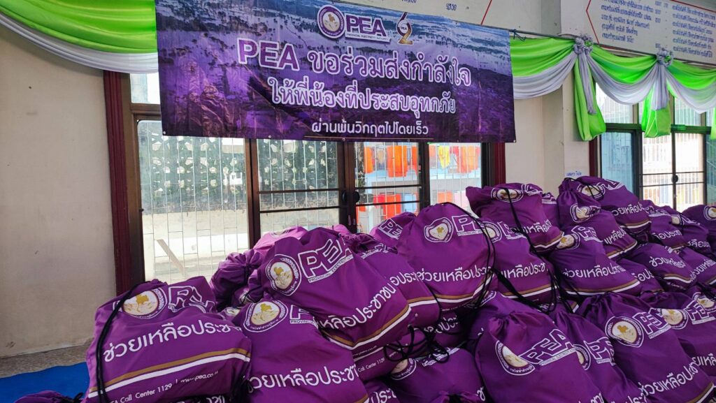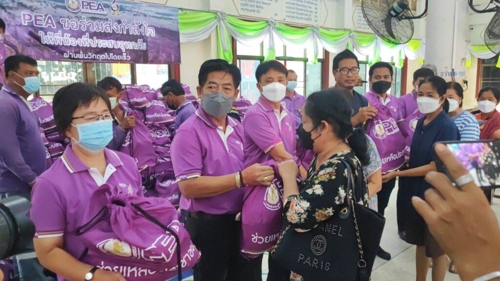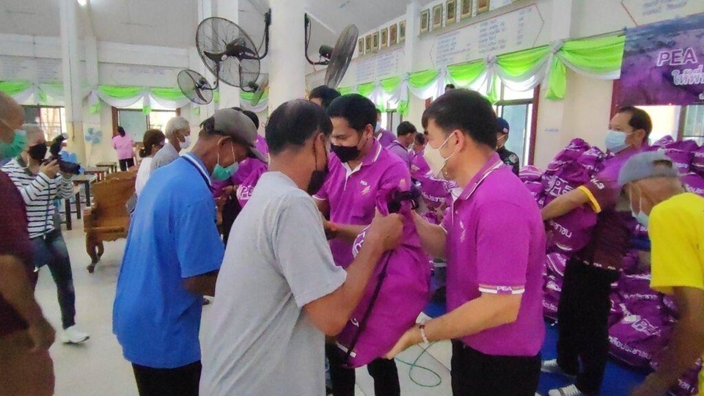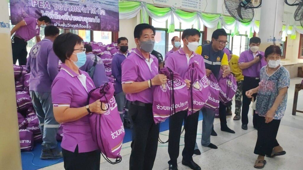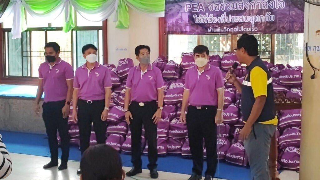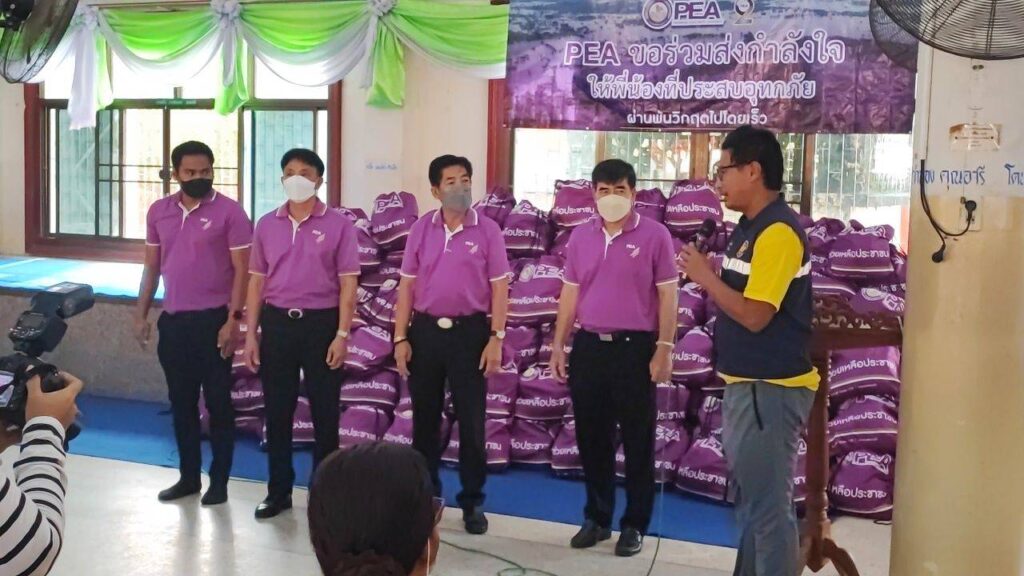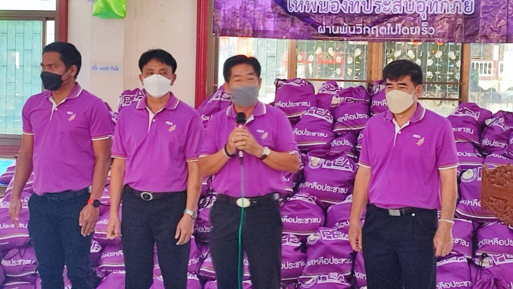 กิจกรรมของ PEA นายอภินันท์ ตระกูลปาน ผู้จัดการ การไฟฟ้าส่วนภูมิภาคจังหวัดสิงห์บุรีเป็นตัวแทนผู้ว่าการ การไฟฟ้าส่วน ภูมิภาค พร้อมด้วย นายเฉลียว แก้วเขียว รองผู้จัดการ ด้านเทคนิค นางสุทธิพร ปากเพรียว ผู้ช่วยผู้จัดการด้านบริหาร นายคำนวณ นวลคำ ผู้จัดการการไฟฟาส่วนภูมิภาคอำเภอพรหมบุรี และนายวีระพงษ์ นาวีระ ผู้จัดการ การไฟฟ้าส่วนภูมิภาคอำเภออินทร์บุรี พร้อมคณะผู้บริหารและพนักงาน ร่วมมอบถุงยังชีพ ให้กับผู้ใช้ไฟฟ้าที่ประสบอุทกภัยในพื้นที่ ม.1 ต.ทับยา อ.อินทร์บุรี จ.สิงห์บุรี หลังน้ำลด จำนวน 300 ชุด ณ วัดพระนอน บ้านบางพระนอน ม.1 ต.ทับยา อ.อินทร์บุรี จ.สิงห์บุรี โดยมีนายเชน คนชาญ ผู้ใหญ่บ้าน ม.1 ต.ทับยา อ.อินทร์บุรี จ.สิงห์บุรี เป็นผู้ประสาน ขอรับมอบถุงยังชีพในครั้งนี้