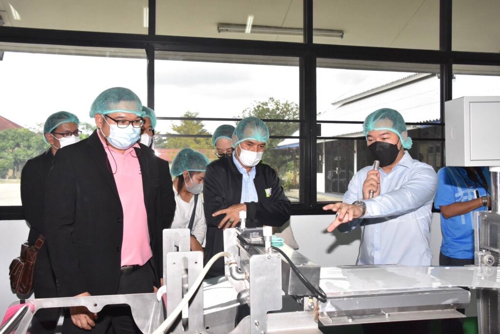 วันที่ 25 พฤศจิกายน 2565 สำนักงานการวิจัยแห่งชาติ (วช.) กระทรวงการอุดมศึกษา วิทยาศาสตร์ วิจัยและนวัตกรรม ลงพื้นที่เยี่ยมชมโครงการวิจัยฯ โดย ดร.วิภารัตน์ ดีอ่อง ผู้อำนวยการสำนักงานการวิจัยแห่งชาติ ได้มอบหมายให้ นายเอนก บำรุงกิจ รองผู้อำนวยการสำนักงานการวิจัยแห่งชาติ นำ ดร.จันทรวิภา ธนะโสภณ ผู้ทรงคุณวุฒิ (วช.) พร้อมด้วยสื่อมวลชน ลงพื้นที่ติดตามผลการดำเนินงานโครงการพัฒนาผลิตแผ่นไอซิ่งต้นแบบเชิงพาณิชย์ ซึ่งมี รศ.วรนุช ศรีเจษฎารักข์ อาจารย์ประจำสาขา ภาควิชาเทคโนโลยีการอาหาร มหาวิทยาลัยขอนแก่น เป็นหัวหน้าโครงการวิจัยฯ ในการนี้ รศ.ดร.ณัฐพงศ์ ดำรงวิริยะนุภาพ คณบดีคณะวิศวกรรมศาสตร์ มหาวิทยาลัยพะเยา พร้อมด้วย ผศ.ดร.สุทธินันท์ ศรีรัตยาวงศ์,ผศ.ดร.วิชญ์พล ฟักแก้ว และ ดร.รัชนีวรรณ อังกุรบุตร์ ทีมนักวิจัยจากสาขาวิชาวิศวกรรมเครื่องกล มหาวิทยาลัยพะเยา ได้ให้การต้อนรับ ทีมนักวิจัยได้ร่วมกับภาคธุรกิจเอกชน นายพันธ์ภูวดล จารุโชติรัตนสกุล กรรมการผู้จัดการ บริษัท อินเตอร์เนชั่นแนล คอนเน็ค เทรด จำกัด ในการพัฒนาเครื่องจักรต้นแบบสำหรับผลิตแผ่นไอซิ่งเชิงพาณิชย์ เพื่อเพิ่มมูลค่าให้กับวัตถุดิบภายในประเทศตลอดจนช่วยลดการนำเข้าของสินค้าจากต่างประเทศด้วยผลงานวิจัยและนวัตกรรม