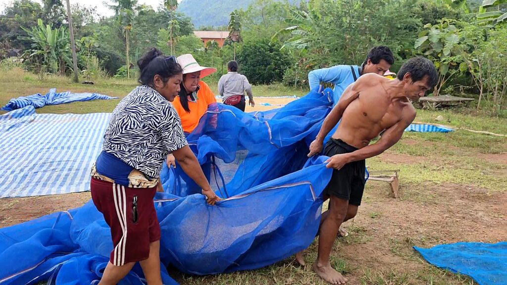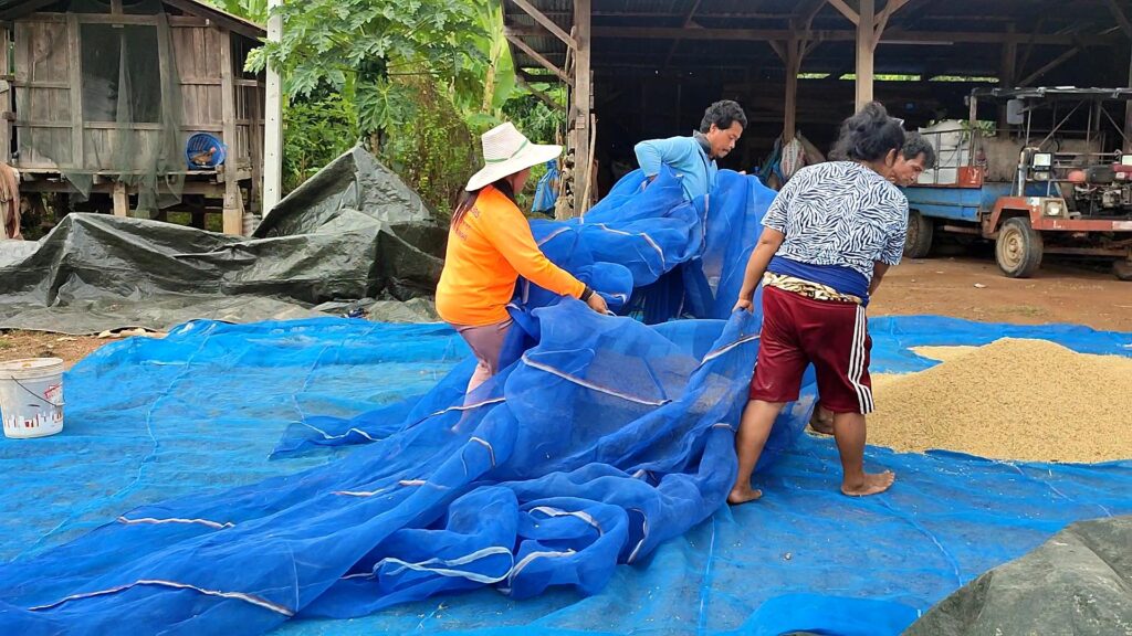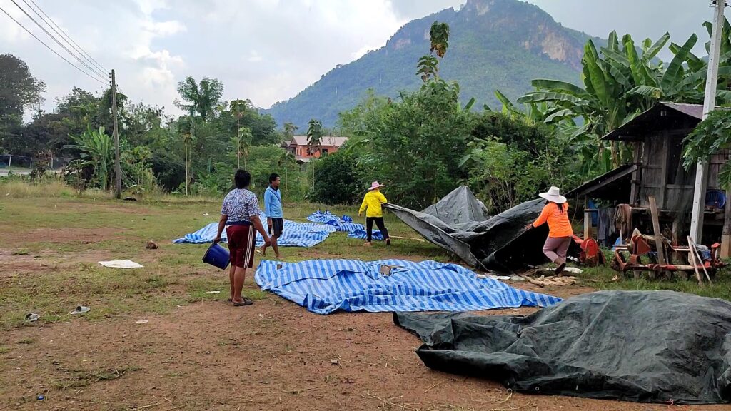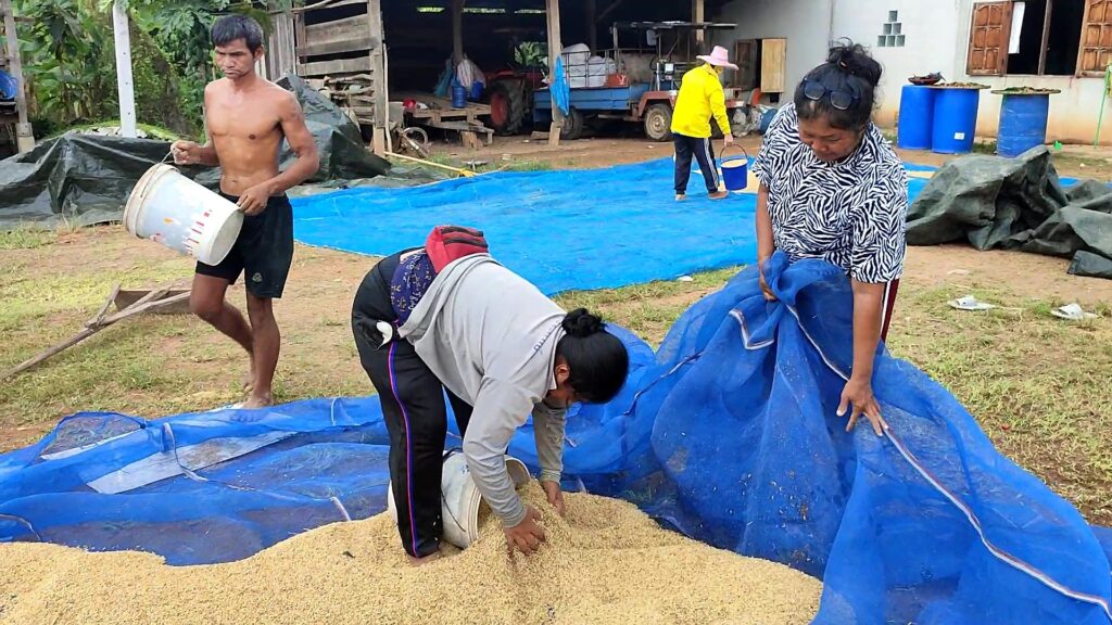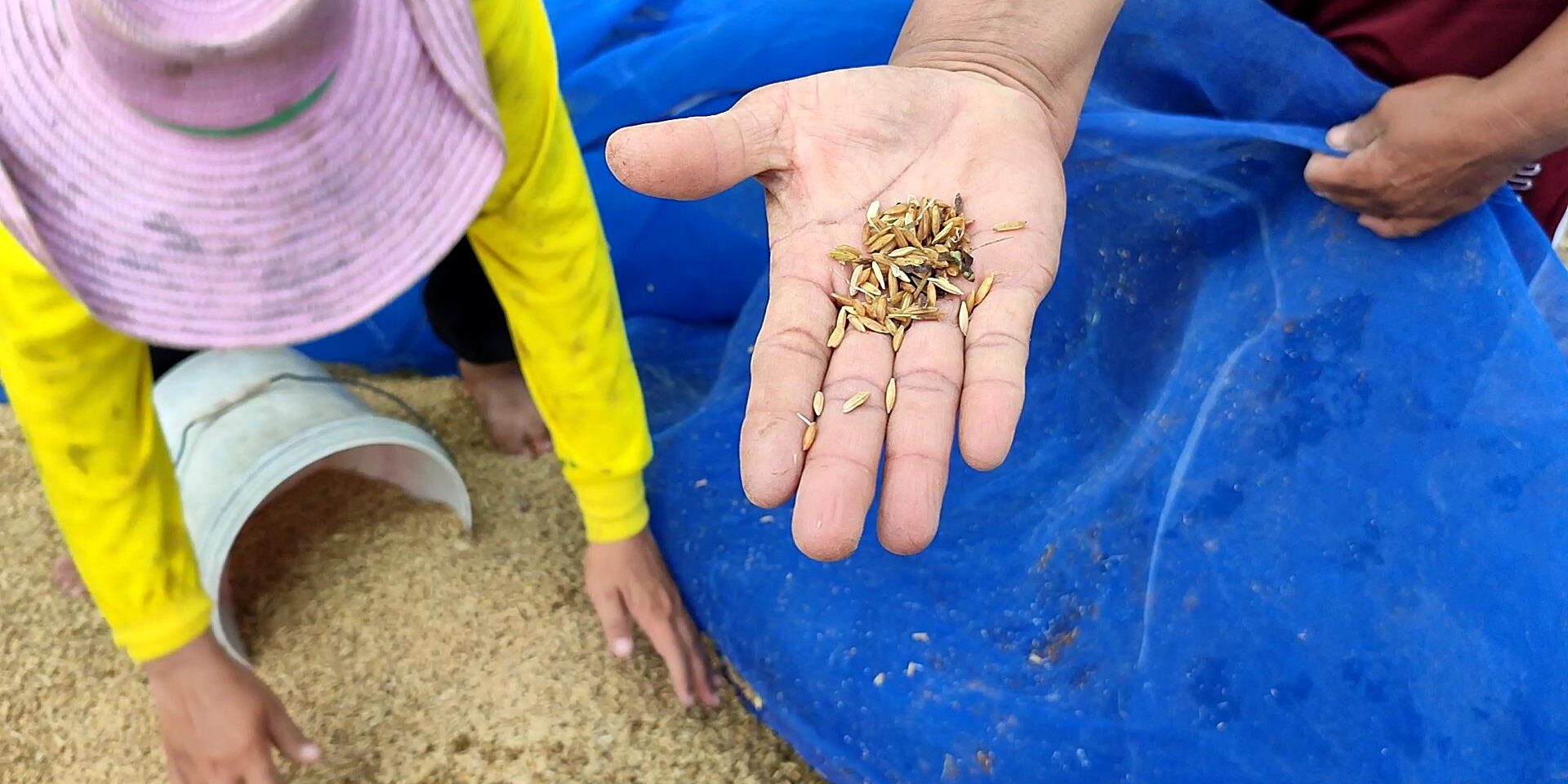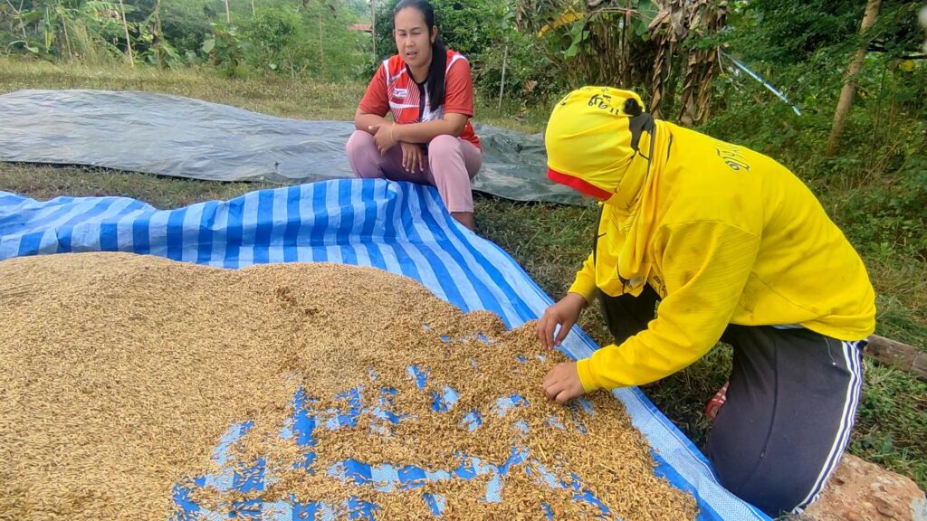 จากการสอบถาม น.ส.ศิรินภา กุลอุปฮาด อายุ54ปี อยู่บ้านเลขที 28 บ้านวังไทรทอง หมู่1 ต.วังโป่ง อ.วังโป่ง จ.เพชรบูรณ์ เล่าว่า ข้าวที่ตากไว้ทุกปี ปกติตากแค่ 3 แดดหรือ 3 วัน ก็เก็บขึ้นฉางได้ เพื่อเอาไว้กิน และเอาขาย ซึ่งช่วงนี้มีฝนตกชุก ข้าวที่ตากไว้หลายวัน จนทำให้ข้าวงอกเพราะตากมา 6 วันแล้ว พอมีแดดออกตอนไหนก็เอาข้าวออกตากตอนนั้น ฝนตกตอนไหนก็วิ่งเก็บกันตอนนั้น บางครั้งเก็บไม่ทันทำให้ข้าวแช่น้ำฝน เป็นประจำทุกวัน วันละ 3 ครั้ง 4 ครั้ง แต่ตอนนี้ต้องเก็บหรือเลือกข้าวที่งอกออกมาไว้ให้ไก่กิน ไม่รู้จะทำยังไงแล้ว มันเสียหายไปแล้วต้องหว่านให้ไก่กิน