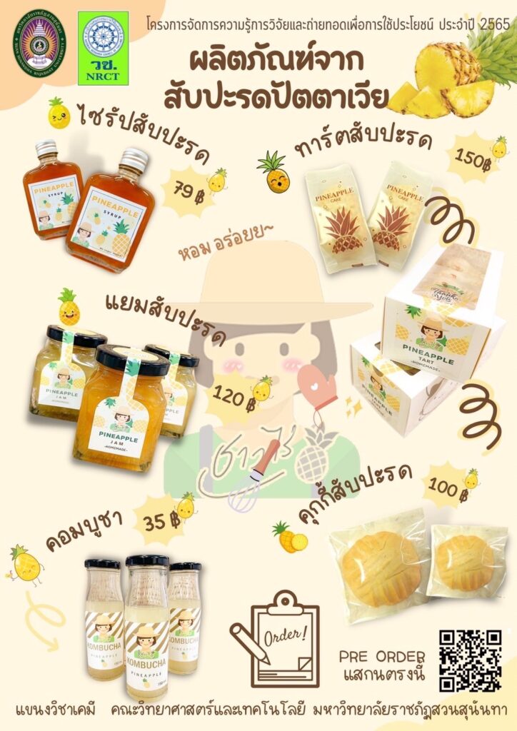 สำนักงานการวิจัยแห่งชาติ ( วช.) กระทรวงการอุดมศึกษา วิทยาศาสตร์ วิจัยและนวัตกรรม (อว.) ให้การสนับสนุนทีมวิจัยจากมหาวิทยาลัยราชภัฏสวนสุนันทา ในการผลิตคิดค้นนวัตกรรมผลิตภัณฑ์แปรรูปจากสับปะรดปัตตาเวียและบรรจุภัณฑ์จากของเหลือทิ้งทางการเกษตร เพื่อแก้ปัญหาสินค้าล้นตลาดและราคาตกต่ำในฤดูการเก็บผลผลิตโดยเฉพาะในพื้นที่ภาคตะวันออก จังหวัดระยอง ซึ่งเป็นพื้นที่การปลูกสับปะรดแหล่งใหญ่แห่งหนึ่งของประเทศ