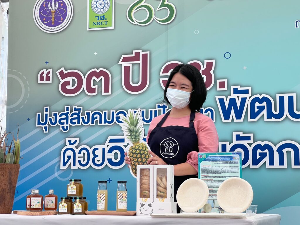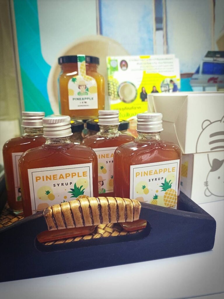 ขณะเดียวกันเพื่อการใช้ประโยชน์อย่างคุ้มค่าตามแนวคิด zero-waste หรือ “ของเสียเหลือศูนย์” ทีมวิจัยยังได้นำวัตถุดิบที่เหลือจากกระบวนการทำไซรัป มาต่อยอดแปรรูปเป็นแยมสับปะรด และคุกกี้ไฟเบอร์สับปะรด เพื่อเพิ่มมูลค่าให้กับ food waste โดยเฉพาะแกนสับปะรดที่ปกติชาวบ้านจะทิ้งไปในกระบวนการแปรรูปนี้มีเอนไซม์โบรมีเลน ซึ่งมีสมบัติช่วยย่อยอาหาร เพิ่มภูมิต้านทานให้กับร่างกาย ซึ่งผลิตภัณฑ์ชุมชนเหล่านี้ใช้วัตถุดิบธรรมชาติล้วน และไม่ใส่วัตถุกันเสีย นอกจากนี้ทีมวิจัยยังนำน้ำสับปะรดมาพัฒนาเป็นเครื่องดื่ม “คอมบูชา” ที่มีจุลินทรีย์โพรไบโอติกส์ มีส่วนช่วยรักษาสมดุลของระบบทางเดินอาหารและระบบขับถ่าย เป็นเครื่องดื่มสุขภาพที่กำลังอยู่ในกระแสนิยมของผู้บริโภคปัจจุบัน สร้างความหลากหลายให้กับผลิตภัณฑ์ชุมชน