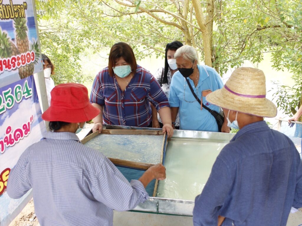จึงได้นำองค์ความรู้เกี่ยวกับอาหารฟังก์ชันมาประยุกต์ใช้ เสริมศักยภาพภูมิปัญญาท้องถิ่นของชาวบ้านที่มีอยู่เดิม พัฒนาผลิตภัณฑ์แปรรูปสอดคล้องกับความต้องการของตลาด ขณะเดียวกันคณะผู้วิจัยยังมีแนวทางการจัดการบรรจุภัณฑ์เพื่อต่อยอดให้เกิดประโยชน์ด้านการสร้างมูลค่าเพิ่มจากวัสดุเหลือทิ้งทางการเกษตร เป็นแนวทางหนึ่งในการลดปัญหาผลกระทบสิ่งแวดล้อมจากกิจกรรมการทำการเกษตรของชุมชน โดยการนำใบสับปะรดมาผลิตเป็นกระดาษ ภาชนะ และบรรจุภัณฑ์ ที่สามารถนำไปสร้างรายได้ เพื่อเสริมศักยภาพทางเศรษฐกิจของชุมชนตามนโยบายโมเดลเศรษฐกิจ BCG