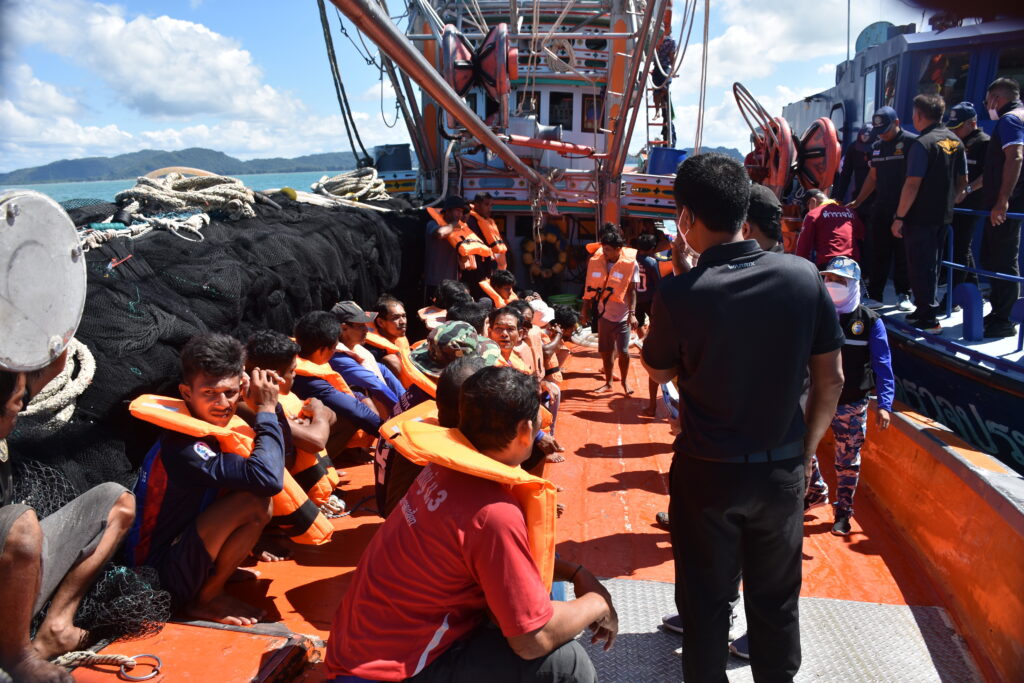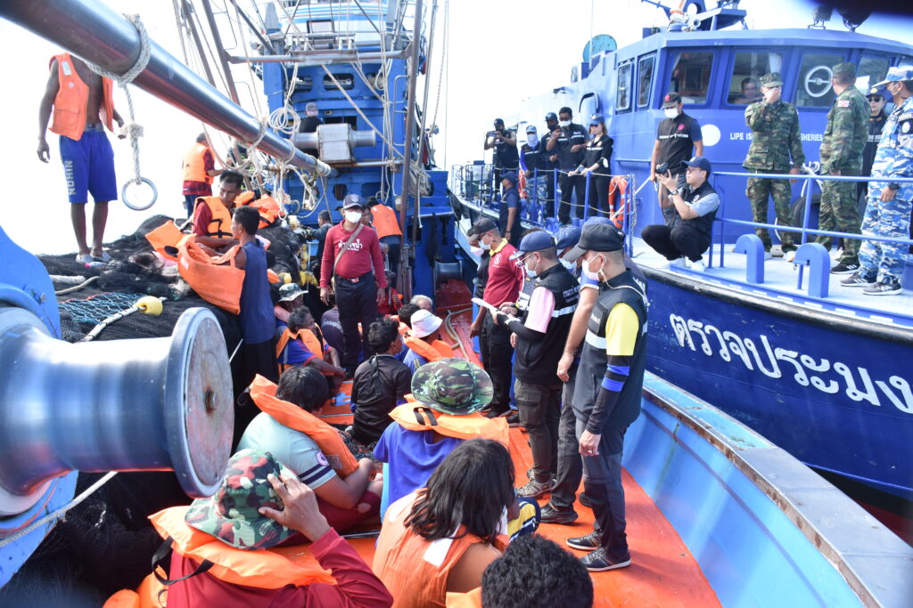 วันนี้ 29 พ.ย. 65 ที่ บริเวณร่องน้ำปากบารา อำเภอละงู จังหวัดสตูล นาวาเอกแสนย์ไท บัวเนียม รองผอ.ศรชล.จว.สตูล ศรชล.ภาค3 ได้บูรณาการออกตรวจสิทธิคุ้มครองแรงงานในเรือประมงทางทะเลตามข้อบังคับกฏหมาย โดยมี สำนักงานสวัสดิการและคุ้มครองแรงงานจังหวัดสตูล,สำนักงานประมงจังหวัดสตูล,ศูนย์บริหารจัดการด่านตรวจประมงเขต9 จังหวัดสตูล,ศูนย์อนุรักษ์ทัพยากรทางทะเลและชายฝั่งจังหวัดสตูล, สำนักงานเจ้าท่าภูมิภาคสาขาสตูล,สถานีตำรวจน้ำ 3 กองกำกับการ 9 บก.รน.,ทหารจากหน่วยปฏิบัติการที่ 452 ทัพเรือภาคที่ 3,ตำรวจภูธรจังหวัดสตูล,สำนักงานตรวจคนเข้าเมืองจังหวัดสตูล,และศูนย์ควบคุมความมั่นคงท่าเรือจังหวัดสตูล เพื่อตรวจใบอนุญาตทำการประมง หนังสือคนประจำเรือ สภาพการจ้างงานของแรงงาน และที่เกี่ยวจ้องเพื่อป้องปรามการค้ามนุษย์ และการกระทำสิ่งผิดกฎหมาย
