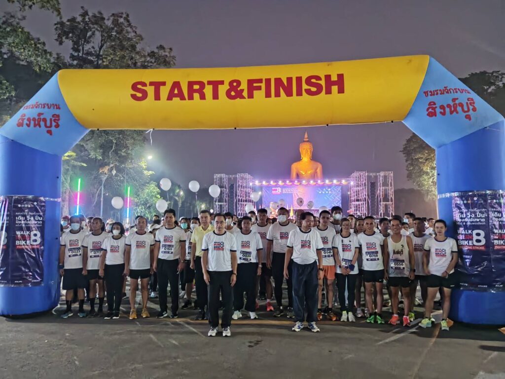 วันที่ 29 พฤศจิกายน 2565 ณ ถนนเฉลิมพระเกียรติ หน้าองค์พระใหญ่ วัดพิกุลทอง ตำบลพิกุลทอง อำเภอท่าช้าง นายสุพจน์ ยศสิงห์คำ ผู้ว่าราชการจังหวัดสิงห์บุรี เป็นประธานเปิดกิจกรรม “แสงนำใจไทยทั้งชาติ เดิน วิ่ง ปั่น ป้องกันอัมพาต ครั้งที่ 8 เฉลิมพระเกียรติ” พระบาทสมเด็จพระเจ้าอยู่หัว และสมเด็จพระนางเจ้าฯ พระบรมราชินี เนื่องในวันโรคหลอดเลือดสมองโลก ประจำปี 2565 โดยมี นายสัมฤทธิ์ กองเงิน รองผู้ว่าราชการจังหวัดสิงห์บุรี นายสมชาย ลีหล้าน้อย รองผู้ว่าราชการจังหวัดสิงห์บุรี พร้อมด้วยหัวหน้าส่วนราชการ คณะแพทย์ พยาบาล บุคลากรทางการแพทย์ และ อสม. เข้าร่วมกิจกรรม