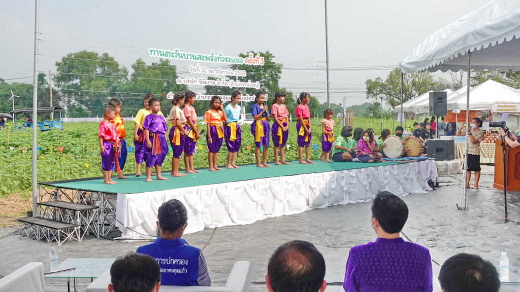 บรรยากาศพิธีเปิดทุ่งทานตะวัน มีการแสดงลำตัดของเด็กนักเรียนโรงเรียนชุมชนวัดหน้าไม้ และการแสดงชุดดอกไม้บานสะพรั้งจากนักศึกษาศูนย์การเรียนปัญญาภิวัฒน์ซีพีแรม สำหรับบริษัท ชีพีแรม จำกัด ได้ดำเนินธุรกิจตามแนวทางสู่ความยั่งยืน บนพื้นฐานการนำแนวคิดเศรษฐกิจหมุนเวียน(Ciroular Economy) หรือการใช้ทรัพยากรให้เกิดประโยชน์ และคุ้มค่าสูงสุดมาปรับใช้ภายในองค์กร โดยพัฒนาพื้นที่ 45 ไร่ ของบริษัท จัดงาน “ทานตะวันบานสะพรั่งทัวระแห่ง” ครั้งที่ 3 ให้เป็นสถานที่ท่องเที่ยววิถีชุมชนแห่งใหม่ของจังหวัดปทุมธานีอย่างต่อเนื่อง เพื่อส่งเสริมการท่องเที่ยวภายในชุมชนของจังหวัดปทุมธานี สามารถสร้างงาน สร้างอาชีพ สร้างรายได้ให้กับคนภายในชุมชนได้อย่างยั่งยืน และช่วยกระตุ้นเศรษฐกิจฐานรากให้กับชุมชนรอบข้างและชุมชนใกล้เดียง อีกทั้ง ยังส่งเสริม และสนับสนุนเกษตรกรในชุมชนบริเวณโดยรอบโรงงานทั่วประเทศ เพื่อยกระดับคุณภาพชีวิตของเกษตรกรไทย และสร้างคุณค่าให้กับสังคมรอบด้านสู่ความยั่งยืนในทุกมิติควบคู่ไปกับการดำเนินธุรกิจด้วยความรับผิดชอบต่อสังคม และชุมชนรอบข้างอย่างต่อเนื่อง