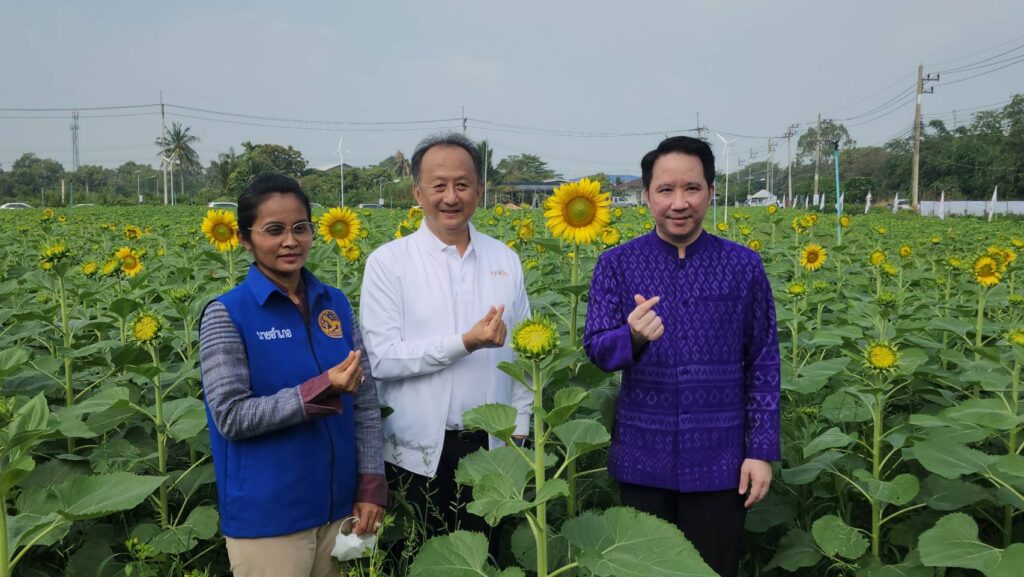 เมื่อเวลา 10.00 น. วันที่ 30 พฤศจิกายน 2565 ที่แปลงทานตะวัน บริษัท ซีพีแรม จำกัด สำนักงานใหญ่ ตำบลระแหง อำเภอลาดหลุมแก้ว จังหวัดปทุมธานี นายพงศธร กาญจนะจิตรา รองผู้ว่าราชการจังหวัดปทุมธานี เป็นประธานพิธีเปิดงาน “ทานตะวันบานสะพรั่งทั่วระแหง” ครั้งที่ 3 เพื่อส่งเสริมการท่องเที่ยววิถีชุมชน และกระตุ้นเศรษฐกิจฐานราก โดยมี นายวิเศษ วิศิษฎ์วิญญู กรรมการผู้จัดการบริษัท ซีพีแรม จำกัด สำนักงานใหญ่ พร้อมด้วยคณะผู้บริหารระดับสูง และเจ้าหน้าที่ บริษัท ซีพีแรม จำกัด ให้การต้อนรับ ซึ่งจะเริ่มเปิดทุ่งทานตะวันพร้อมบานสะพรั่งในระหว่างวันที่ 3 – 18 ธันวาคม 2565 นี้ บนพื้นที่กว่า 5 ไร่ พร้อมเลือกซื้อสินค้าทางด้านการเกษตรของชุมชน เยี่ยมชมฐานการเรียนรู้ด้านการเกษตร รับชมการจัดแสดงพืชผักนานาชนิด และยังได้รับกล้าผักฟรี