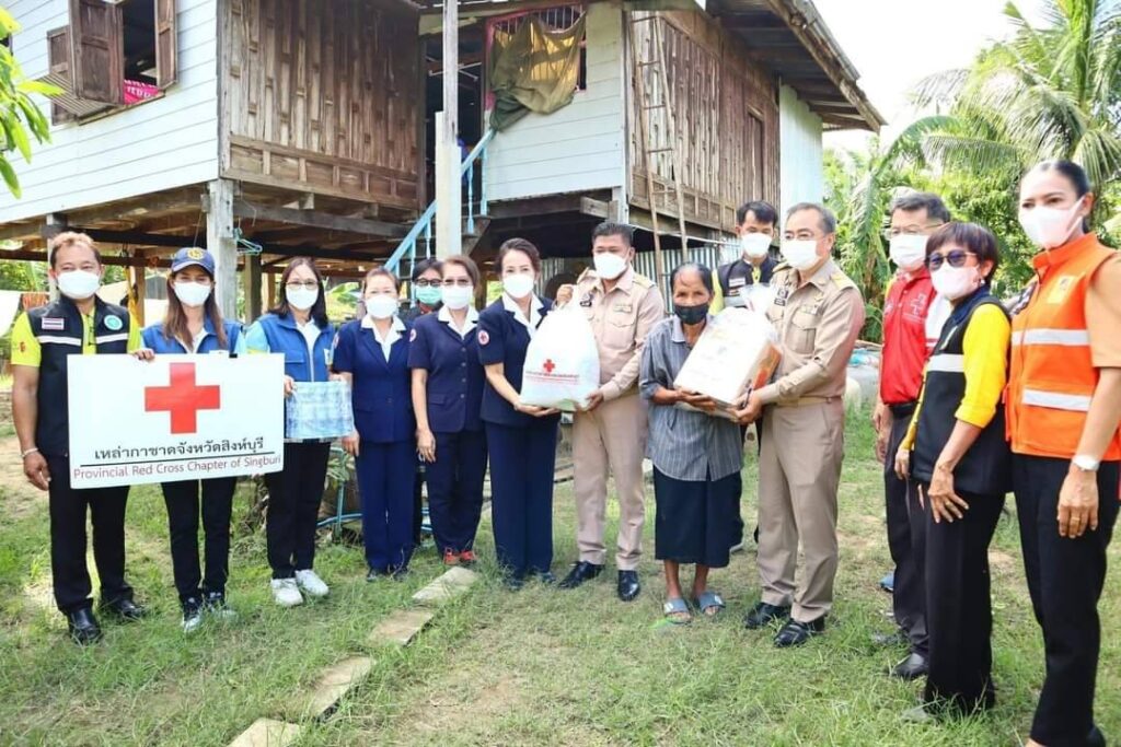 วันที่ 2 ธันวาคม 2565 เวลา 14.00 น. นายสุพจน์ ยศสิงห์คำ ผู้ว่าราชการจังหวัดสิงห์บุรี/นายกเหล่ากาชาดจังหวัดสิงห์บุรี พร้อมด้วย นายสมชาย ลีหล้าน้อย รองผู้ว่าราชการจังหวัดสิงห์บุรี นายสมชาย วุฒิชัยกุล นายอำเภอท่าช้าง/นายกกิ่งกาชาดอำเภอท่าช้าง นางสาวนัยนา ศรีเร รองนายกเหล่ากาชาดจังหวัดสิงห์บุรี ผู้ช่วยนายกเหล่ากาชาดจังหวัดสิงห์บุรี คณะกรรมการเหล่ากาชาดจังหวัดสิงห์บุรี หัวหน้าสำนักงานป้องกันและบรรเทาสาธารณภัยจังหวัดสิงห์บุรี ปลัดอำเภอ ผู้บริหารท้องถิ่น เจ้าหน้าที่เหล่ากาชาดจังหวัดสิงห์บุรี กำนัน และผู้ใหญ่บ้าน ลงพื้นที่ตรวจเยี่ยมให้กำลังใจผู้ประสบวาตภัย บ้านเรือนได้รับความเสียหาย จำนวน 8 หลังคาเรือน ในพื้นที่ตำบลวิหารขาว อำเภอท่าช้าง จำนวน 7 หลังคาเรือน และในพื้นที่ตำบลโพธิ์ประจักษ์ อำเภอท่าช้าง จำนวน 1 หลังคาเรือน พร้อมมอบเครื่องอุปโภค-บริโภค รายละ 1 ชุด