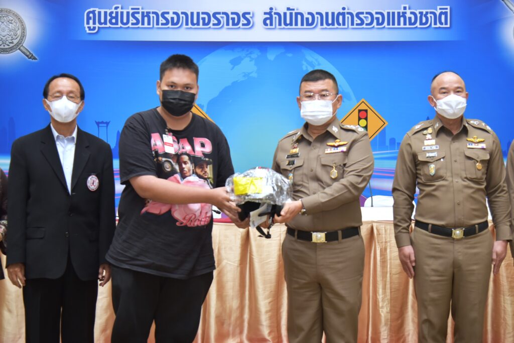 ทั้งนี้ เมื่อเสร็จพิธีมอบเงินรางวัลแล้ว ผบ.ตร. และผู้บริหารของสำนักงานตำรวจแห่งชาติ ได้มอบหมวกนิรภัยให้ ประชาชน สื่อมวลชน และหน่วยงานภาคีเครือข่ายที่มาร่วมพิธี เพื่อรณรงค์เรื่องการสวมหมวกนิรภัย 100% ตามนโยบายของรัฐบาล ผบ.ตร. ยังกล่าวเพิ่มเติมว่า ปัจจุบัน อุบัติเหตุทางถนนจะเกิดจากปัจจัยของผู้ขับขี่เป็นสำคัญ หากทุกคนร่วมกันปฏิบัติตามกฎจราจร และร่วมกันสอดส่อง ตรวจตราการทำผิดบนท้องถนน ก็จะช่วยสร้างสังคมขับขี่ปลอดภัย สามารถลดอุบัติเหตุทางถนนได้ตามเป้าหมายที่รัฐบาลกำหนดอย่างเป็นรูปธรรม