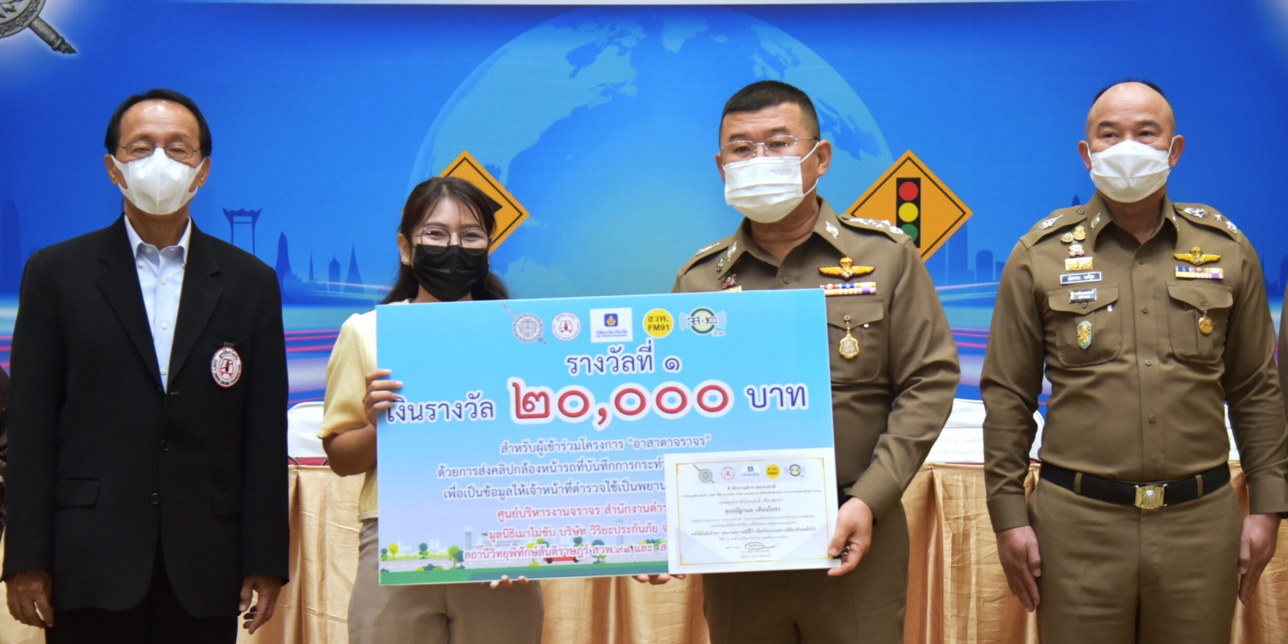 วันที่ 2 ธ.ค.65 เวลา 11.00 น.ณ ห้องศรียานนท์ โซนซี สำนักงานตำรวจแห่งชาติ : พล.ต.อ.ดำรงศักดิ์ กิตติประภัสร์ ผบ.ตร.,พล.ต.ทประจวบ วงศ์สุข ผู้ช่วย ผบ.ตร.,พล.ต.ท.วีระ จิรวีระ รอง จตช.,พล.ต.ท.นัยวัฒน์ ผะเดิมชิต ผบช.สยศ.ตร. และ พล.ต.ต.นิธิธร จินตกานนท์ รอง ผบช.น. พร้อมด้วย นพ.แท้จริง ศิริพานิช เลขาธิการมูลนิธิเมาไม่ขับ,คุณกานดา วัฒนายิ่งสมสุข ที่ปรึกษา ฝ่ายการตลาด บริษัท วิริยะประกันภัย จำกัด (มหาชน),คุณนิตยา ลีธีระกุล รองผู้จัดการฝ่ายรายการ สถานีวิทยุพิทักษ์สันติราษฎร์ สวพ.91 และ คุณอัจฉรา บัวสมบูรณ์ ผู้ช่วยผู้อำนวยการ สถานีวิทยุ จส.100 ร่วมแถลงผลการมอบรางวัล และเกียรติบัตร โครงการอาสาตาจราจร โดยมอบรางวัลให้กับประชาชนเจ้าของคลิปกล้องหน้ารถที่บันทึกอุบัติเหตุทางถนนหรือการกระทำผิดกฎจราจรที่สำคัญ รวม 20 รางวัล เป็นเงิน 100,000 บาท (คลิปประจำเดือน ก.ย. และ ต.ค.65) โดยมีบริษัท วิริยะฯ สนับสนุนเงินรางวัลในกิจกรรมดังกล่าว