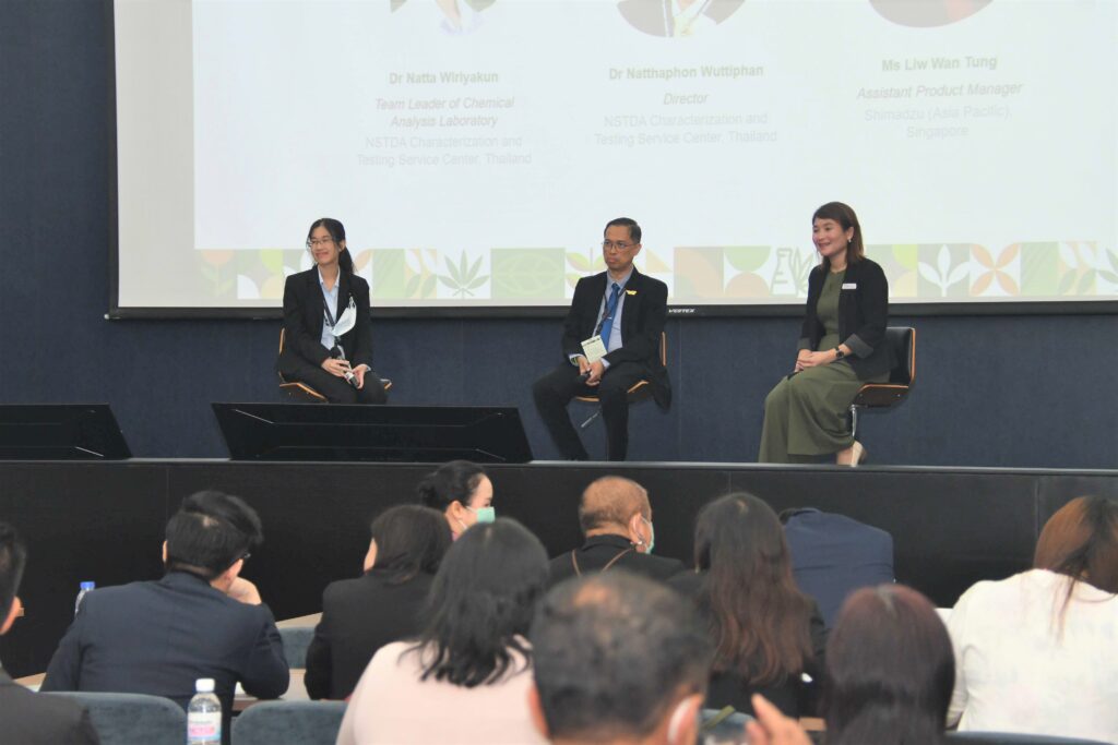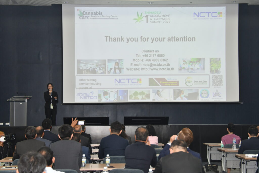 เมื่อวันที่ 2 ธันวาคม 2565 ณ อุทยานวิทยาศาสตร์ประเทศไทย จ.ปทุมธานี : สำนักงานพัฒนาวิทยาศาสตร์และเทคโนโลยีแห่งชาติ (สวทช.) โดยศูนย์บริการวิเคราะห์ทดสอบ (NCTC) ร่วมกับ Shimadzu Asia Pacific และบริษัท พาราไซแอนติฟิค จำกัด จัดงาน Shimadzu 1st Global Hemp & Cannabis Summit 2022 เพื่อเปิดพื้นที่ในการรับฟังความต้องการของผู้ประกอบการและผู้ที่ต้องการนำกัญชา กัญชง ไปใช้ประโยชน์เพื่อพัฒนาอุตสาหกรรมในประเทศ โดยมีนายสุชาติ ไตรแสงรุจิระ ที่ปรึกษารัฐมนตรีว่าการกระทรวงอุตสาหกรรม เป็นประธานเปิดงาน พร้อมด้วย Mr. Tetsuya Tanigaki กรรมการผู้จัดการ Shimadzu (Asia Pacific) ประเทศสิงคโปร์ คุณพูศักดิ์ หิรัณยตระกูล กรรมการผู้จัดการ บริษัท พาราไซแอนติฟิค จำกัด ผศ.สุชาดา ไชยสวัสดิ์ ผู้อำนวยการศูนย์วิเคราะห์ทดสอบยาชีววัตถุ (BPCL) มหาวิทยาเทคโนโลยีพระจอมเกล้าธนบุรี และ ดร.ณฏฐพล วุฒิพันธุ์ ผู้อำนวยการศูนย์บริการวิเคราะห์ทดสอบ (สวทช.) เข้าร่วมงาน
