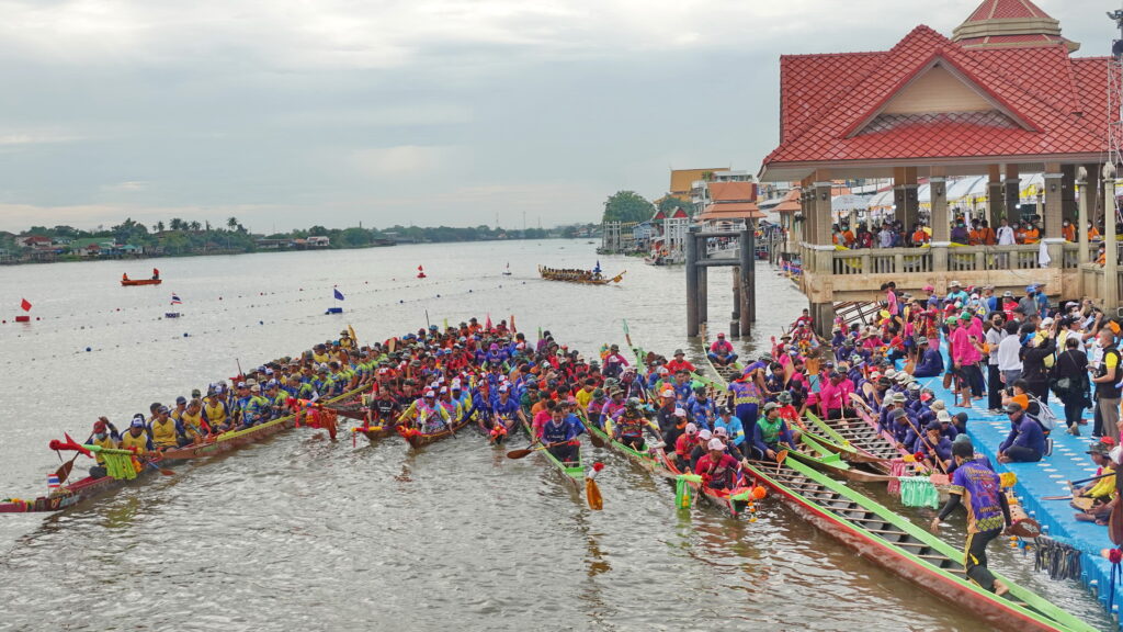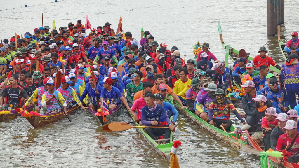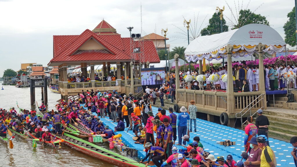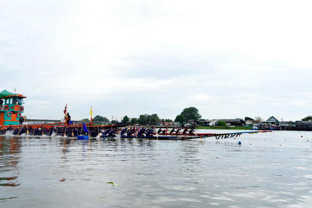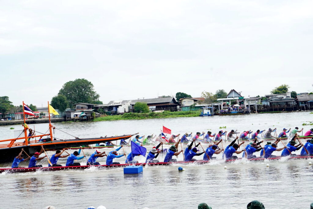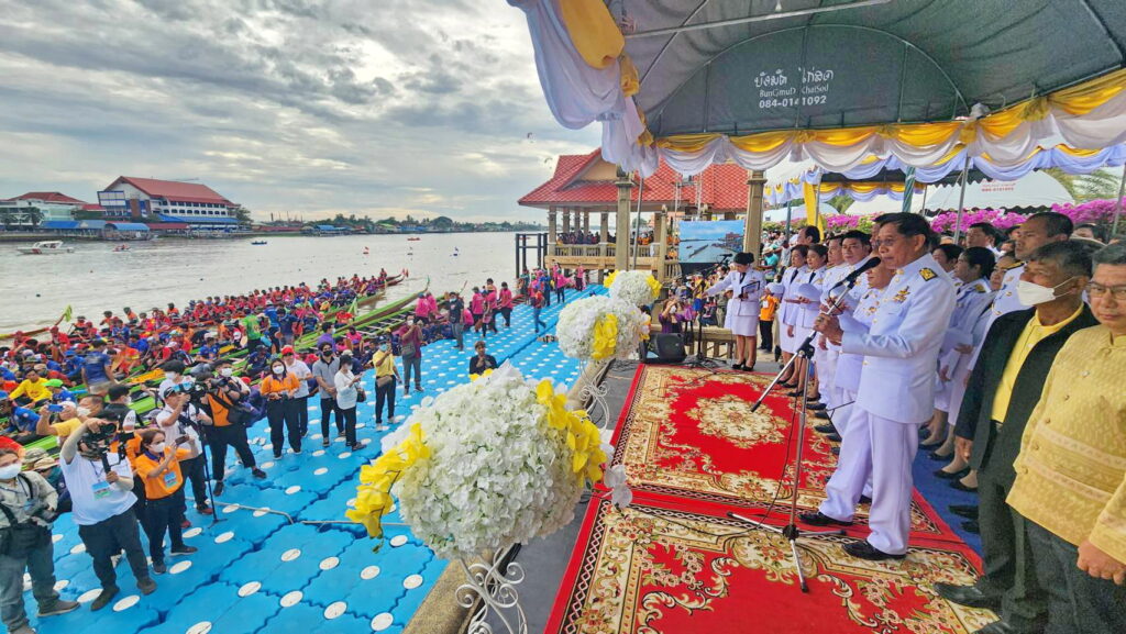 บรรยากาศช่วงเช้ามีการจัดขบวนอัญเชิญถ้วยพระราชทานและขบานรถบุปผชาติ ออกจากบริเวณหน้าสำนักงานองค์การบริหารส่วนจังหวัดปทุมธานี เคลื่อนขบวนไปยังริมเขื่อนสวนเทพปทุม ทั้งนี้องค์การบริหารส่วนจังหวัดปทุมธานี ได้บูรณาการร่วมกับ จังหวัดปทุมธานี สมาคมกีฬาเรือพายแห่งประเทศไทย และการท่องเที่ยวแห่งประเทศไทย สำนักงานกรุงเทพมหานคร จัดโครงการแข่งขันเรือยาวประเพณี จังหวัดปทุมธานีประจำปี 2565 ขึ้นระหว่าง วันที่ 3 – 5 ธันวาคม 2565 ณ แม่น้ำเจ้าพระยา บริเวณสวนเทพปทุม โดยมีวัตถุประสงค์เพื่อเฉลิมพระเกียรติและแสดงความจงรักภักดีต่อพระบาทสมเด็จพระมหาภูมิพลอดุลยเดชมหาราชบรมนาถบพิตร (รัชกาลที่ 9) พระบาทสมเด็จพระวชิรเกล้าเจ้าอยู่หัว (รัชกาลที่ 10) และสมเด็จพระนางเจ้าฯ พระบรมราชินี เพื่ออนุรักษ์วัฒนธรรม ส่งเสริมภูมิปัญญา และสืบสานประเพณีท้องถิ่นให้คงอยู่สืบไป เพื่อประชาสัมพันธ์จังหวัดปทุมธานี ในด้านการร่วมส่งเสริมอนุรักษ์ประเพณีที่ดีงามของท้องถิ่น ให้เป็นที่รู้จักอย่างแพร่หลาย ทั้งในและต่างประเทศ รวมทั้งเพื่อส่งเสริมและกระตุ้นเศรษฐกิจ เพิ่มมูลค่าและพัฒนาตลาดเชิงรุก ด้านการท่องเที่ยวของจังหวัดปทุมธานี ในการจัดการแข่งขันครั้งนี้มีเรือสมัครเข้าร่วมการแข่งขันจากทั่วประเทศ จำนวน 42 ลำ แบ่งการแข่งขันออกเป็น 4 ประเภท ได้แก่ 1. เรือยาวชิงถ้วยพระราชทาน พระบาทสมเด็จพระเจ้าอยู่หัว เรือยาวใหญ่ประเภท 55 ฝีพาย พร้อมรางวัลเงินสด จำนวน 200,000 บาท เรือยาวกลางประเภท 40 ฝีพาย พร้อมรางวัลเงินสด จำนวน 150,000 บาท เรือยาวเล็กประเภท 30 ฝีพาย พร้อมรางวัลเงินสด จำนวน 100,000 บาท 2. เรือพายม้า ชิงถ้วยพระราชทาน สมเด็จพระนางเจ้าฯ พระบรมราชินี ได้แก่ เรือพายม้า 10 ฝีพาย พร้อมรางวัลเงินสด จำนวน 100,000 บาท สำหรับการจัดงานได้รับการสนับสนุนจากหน่วยงาน ภาครัฐ รัฐวิสาหกิจ และเอกชน ได้แก่ 1. สมาคมกีฬาเรือพายแห่งประเทศไทย 2. การท่องเที่ยวแห่งประเทศไทย สำนักงานกรุงเทพมหานคร 3. สภาอุตสาหกรรมท่องเที่ยวจังหวัดปทุมธานี 4. บริษัท ไทยสแตนเลย์การไฟฟ้า จำกัด 5. สมาคมส่งเสริมการค้าธุรกิจท่องเที่ยวจังหวัดปทุมธานี 6. ตลาดสี่มุมเมือง 7. บริษัท คุมะ จำกัด 8. บริษัท ริเวอร์ เอ็นจิเนียริ่ง จำกัด ภายในการแข่งขันเรือยังมีงานมหกรรม “ตลาดนัดบัวหลวง” ออกร้านสินค้าราคาประหยัดเพื่อเป็นการช่วยเหลือพี่น้องประชาชนที่มาเที่ยวชมการแข่งขัน โดยเป็นผลิตภัณฑ์จาก 7 อำเภอในจังหวัดปทุมธานี