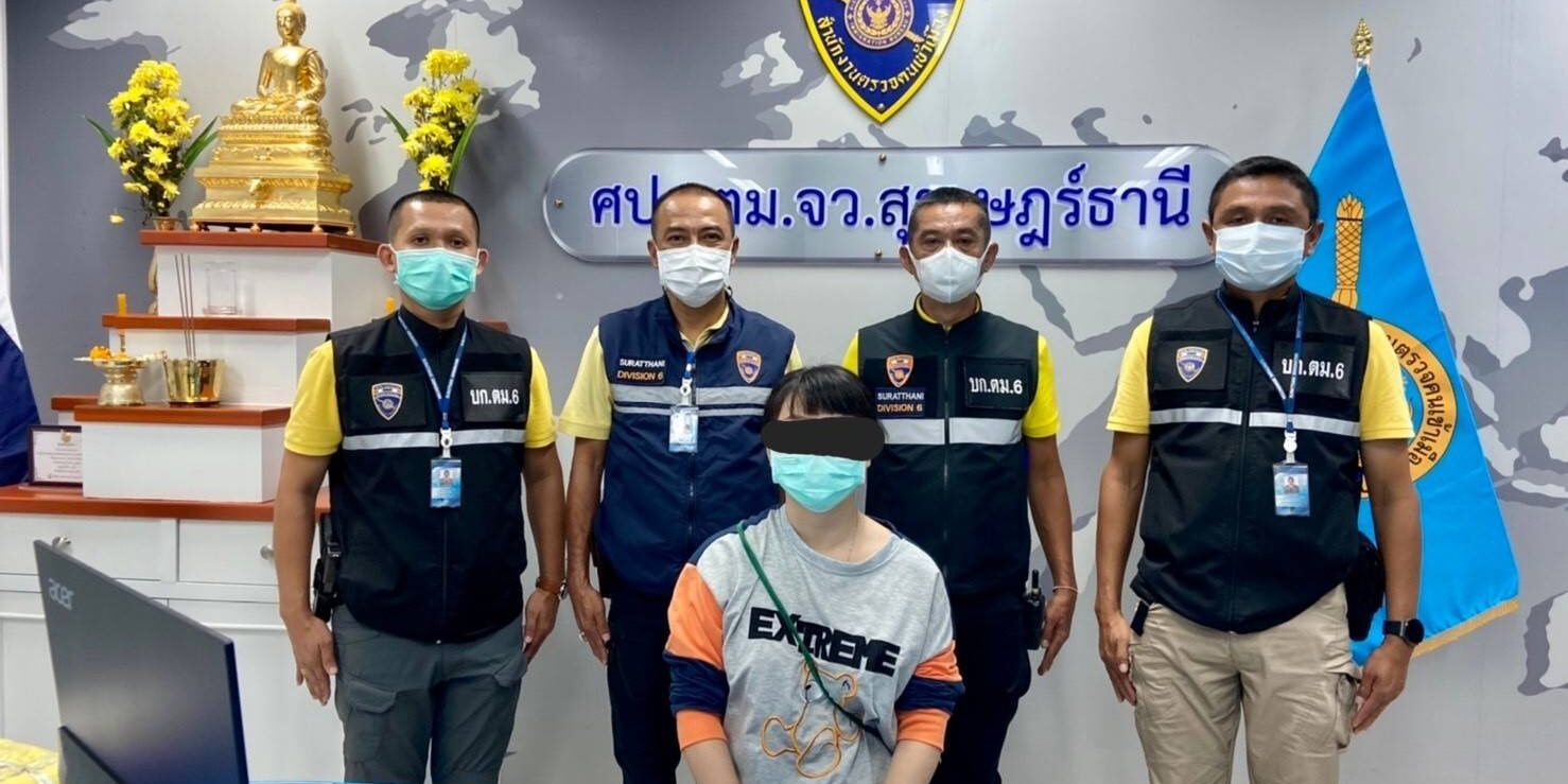 และได้จับกุมตัว Miss HuYanqiu อายุ 31 ปี สัญชาติจีน หนังสือเดินทางเลขที่ E32797809 โดยกล่าวหาว่า “เป็นบุคคลต่างด้าวอยู่ในราชอาณาจักรโดยการอนุญาตสิ้นสุด” (19วัน) สถานที่จับกุม บ้านเลขที่ 227/130 ถนนโฉลกรัฐ ต.มะขามเตี้ย อ.เมือง จ.สุราษฎร์ธานี พร้อมนี้เจ้าหน้าที่ชุดจับกุมได้ควบคุมตัวผู้ถูกจับ ส่ง พงส.สภ.เมืองสุราษฎร์ธานี เพื่อดำเนินคดีตามกฏหมายต่อไป