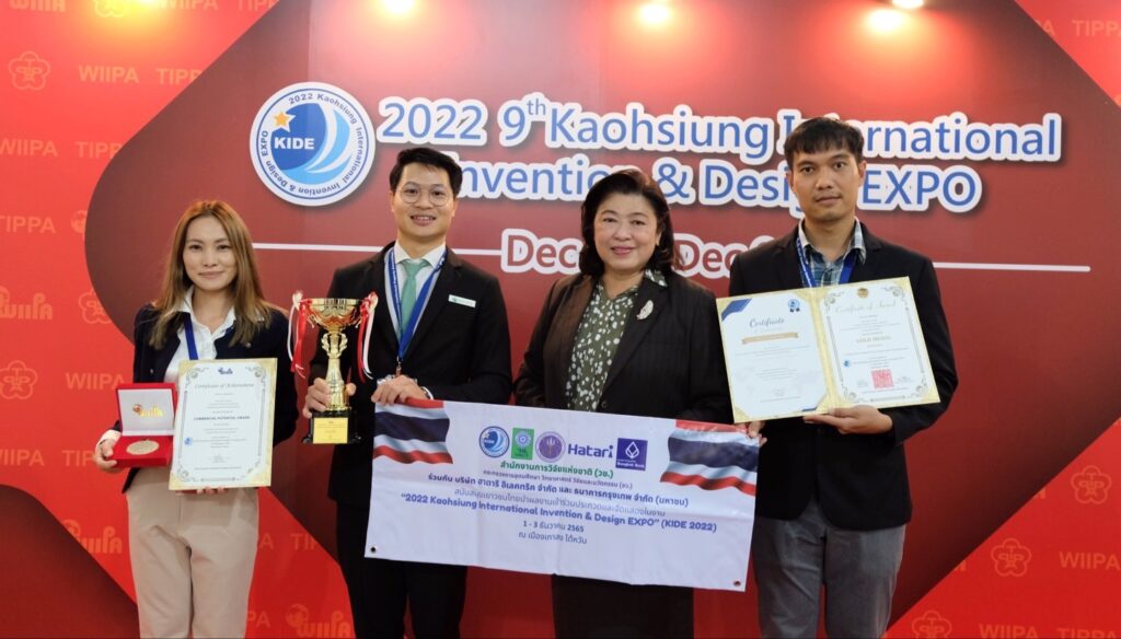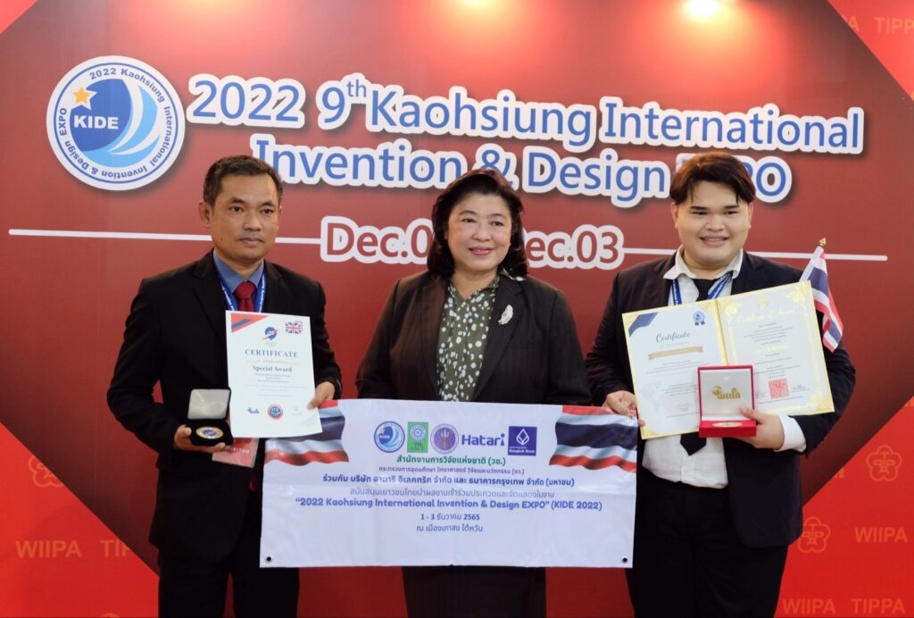 สำนักงานการวิจัยแห่งชาติ (วช.) กระทรวงการอุดมศึกษา วิทยาศาสตร์ วิจัยและนวัตกรรม (อว.) นำทีมนักประดิษฐ์นักวิจัยไทยสร้างความภาคภูมิใจให้กับประเทศไทย ในการคว้ารางวัล WIIPA Grand Prize ซึ่งเป็นรางวัลสูงสุดของงานจากการประกวดสิ่งประดิษฐ์และนวัตกรรมระดับนานาชาติ ในเวที 2022 Kaohsiung International Invention & Design Expo (KIDE 2022) เมื่อวันที่ 1-3 ธันวาคม 2565 ณ International Convention Center Kaohsiung (ICCK) เมืองเกาสง ไต้หวัน