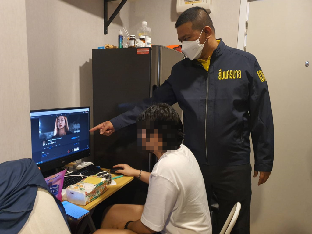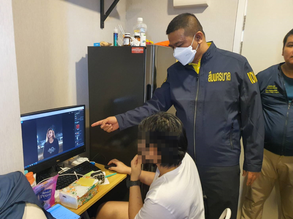 โดยเมื่อวันที่ 4 ธ.ค.65 เวลาประมาณ 13.00 น. พล.ต.อ.ดำรงศักดิ์ กิตติประภัสร์ ผบ.ตร. พร้อมด้วยพล.ต.อ.รอย อิงคไพโรจน์ รอง ผบ.ตร.,พล.ต.ท.ธิติ แสงสว่าง ผบช.น.,พล.ต.ต.ธีรเดช ธรรมสุธีร์ ผบก.สส.บช.น./หน.ชุดปฏิบัติการ PCT ที่ 5,พ.ต.อ.วรพจน์ รุ่งกระจ่าง,พ.ต.ท.ชัยวัฒน์ จงเจริญ,พ.ต.ต.คณิตนนท์ ถนอมศรี,ร.ต.อ.วุฒินันท์ คงดี,ร.ต.อ.ปรมา ปราณี ได้นำกำลังเจ้าหน้าที่ตำรวจ ศปอส.ตร. (PCT) ชุดที่ 5 ร่วมกับชุดลาดตระเวนออนไลน์ บก.สส.บช.น. สืบสวนติดตามนำมาสู่การเข้าตรวจค้น ห้องพักเลขที่ 188/130 คอนโดน๊อตติ้งฮิลล์ ถ.แพรกษา ต.ท้ายบ้านใหม่ อ.เมือง จ.สมุทรปราการ ตามหมายค้นศาลจังหวัดสมุทรปราการที่ 762/2565 ลงวันที่ 4 ธ.ค.65 จับกุมตัวผู้ต้องหาดังนี้