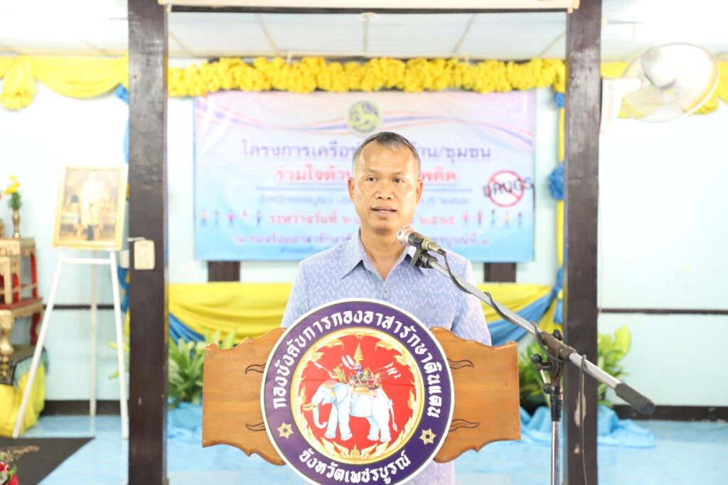 นายชัยสิทธิ์ ชัยสัมฤทธิ์ผล ปลัดจังหวัดเพชรบูรณ์ กล่าวว่า ที่ทำการปกครองจังหวัดเพชรบูรณ์ ได้จัดทำ โครงการเครือข่ายหมู่บ้าน/ชุมชนร่วมใจต้านภัยยาเสพติด จังหวัดเพชรบูรณ์ ประจำปีงบประมาณ พ.ศ. 2566 จำนวน 1 รุ่น โดยใช้เวลาการฝึกอบรมจำนวน 2 คืน 3 วัน ระหว่างวันที่ 6-8 ธันวาคม 2565 มีผู้เข้ารับการฝึกอบรมจาก 11 อำเภอ จำนวน 100 คน โดยมีวัตถุประสงค์ เพื่อสำรวจกลุ่มเป้าหมาย เยาวชน ที่มีแนวโน้มหรือมีโอกาสที่จะเข้าไปเกี่ยวข้องกับยาเสพติดหรือสร้างปัญหาในพื้นที่หมู่บ้าน/ชุมชนในอนาคต เพื่อใช้เป็นกลุ่มเป้าหมายในการเฝ้าระวัง เพื่อคัดเลือกประชาชนวัยเสี่ยง ห้วงอายุ 13-29 ปี ที่อำเภอเห็นว่าเป็นผู้ที่จะสามารถนำมาพัฒนาให้เป็นผู้นำ หรือเป็นแนวร่วมทำกิจกรรมต่างๆ เพื่อป้องกันปัญหายาเสพติดในพื้นที่ได้ตามเป้าหมายที่กำหนด เพื่อสร้างภูมิคุ้มกันและหากิจกรรมการมีส่วนร่วมให้แก่ประชาชนวัยเสี่ยง ห้วงอายุ 13-29 ปี ที่ไม่ได้อยู่ในระบบการศึกษาภาคปกติ หรือกลุ่มว่างงาน หรือเป็นผู้มีจิตอาสาช่วยเหลืองานสาธารณประโยชน์ ได้มีส่วนร่วมในการป้องกันแก้ไขปัญหายาเสพติดในพื้นที่ เพื่อเสริมสร้างความเข้มแข็งให้กับครอบครัวและชุมชน ได้ตระหนักรู้ถึงปัญหายาเสพติด เพื่อลดและป้องกันผู้เกี่ยวข้องกับยาเสพติดรายใหม่ โดยการมีส่วนร่วมทำกิจกรรมกลุ่มในชุมชนอย่างต่อเนื่อง และเพื่อเพิ่มศักยภาพและประสิทธิภาพการทำงานของอำเภอ ในการป้องกันและแก้ไขปัญหายาเสพติด โดยการนำประชาชนที่ผ่านการ ฝึกอบรมหลักสูตร มาช่วยเหลืองานของทางราชการ หรือการรวมกลุ่มจัดกิจกรรมรูปแบบต่างๆ ร่วมกัน เช่น ดนตรี กีฬา หรืองานบริการสาธารณประโยชน์ในพื้นที่