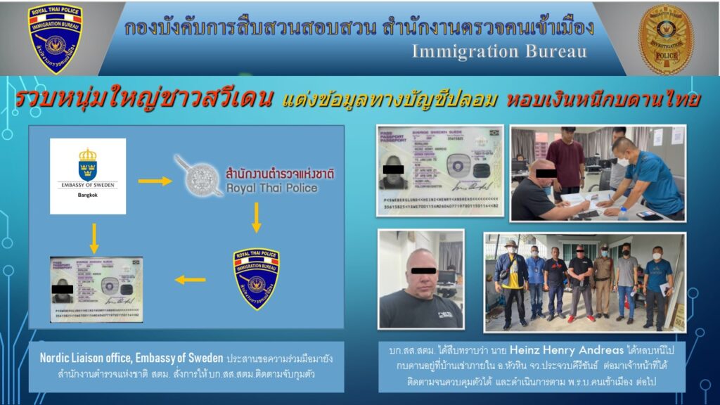 กล่าวคือ สืบเนื่องมาจากฝ่ายกิจการตำรวจกลุ่มประเทศนอร์ดิกประจำสถานฑูตสวีเดน ได้ประสานขอความร่วมมือในการติดตามตัวนาย ไฮซ์ เฮนรี ( Heinz Henry ) อายุ 52 ปี สัญชาติสวีเดน เป็นผู้ต้องหาในความผิดทางบัญชีอย่างร้ายแรง โดยละเลยการจัดทำหรือทำปลอมทางบัญชีและมิได้นำส่งหลักฐานทางบัญชีของบริษัท ตามที่กฎหมายกำหนด โดยมีการจ้างผู้อื่นมาเป็นตัวแทนมาดำเนินการแทนและลงนามเกี่ยวกับบริษัทแทนตนเอง ในส่วนของมูลค่าความเสียหายยังไม่ทราบแน่ชัด แต่จำนวนเงินที่หมุนเวียนในบริษัททั้งที่แจ้งและยังไม่ได้แจ้งที่มาของรายได้เข้า-ออกตั้งแต่ปี 2017-2019 รวมเป็นเงินโดยประมาณ 35,000,000 บาท ต่อมาบริษัทดังกล่าวได้มีการแจ้งล้มละลายในปี 2019 ทางการสวีเดนจึงได้ออกหมายจับและเพิกถอนหนังสือเดินทางของบุคคลดังกล่าว
