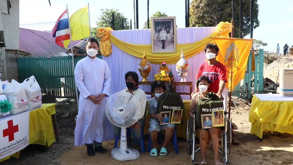 จากนั้น นายสมชาย ลีหล้าน้อย รองผู้ว่าราชการจังหวัดสิงห์บุรี พร้อมนางจิราภรณ์ กองเงิน รองนายกเหล่ากาชาด และคณะกรรมการเหล่ากาชาดจังหวัด ได้พูดคุยให้กำลังใจกับผู้ประสบอัคคีภัยพร้อมมอบเงินช่วยเหลือและสิ่งของอุปโภคบริโภค พัฒนาสังคมและความมั่นคงของมนุษย์จังหวัดสิงห์บุรี มอบเงินสงเคราะห์ผู้ประสบปัญหาทางสังคม อบต.โรงช้างมอบถุงยังชีพช่วยเหลือในเบื้องต้น และบาทหลวงสมพร ฤทัยหวนพนา รักษาการแทนผู้อำนวยการโรงเรียนพระกุมารเยซู สิงห์บุรี มอบเครื่องใช้ไฟฟ้า ให้ผู้ประสบอุทกภัย เป็นกำลังใจที่เข้มแข็งพร้อมที่จะต่อสู้กับปัญหาและอุปสรรคต่างๆผ่านพ้นไปด้วยดี