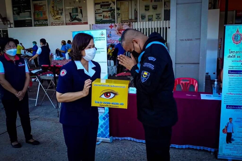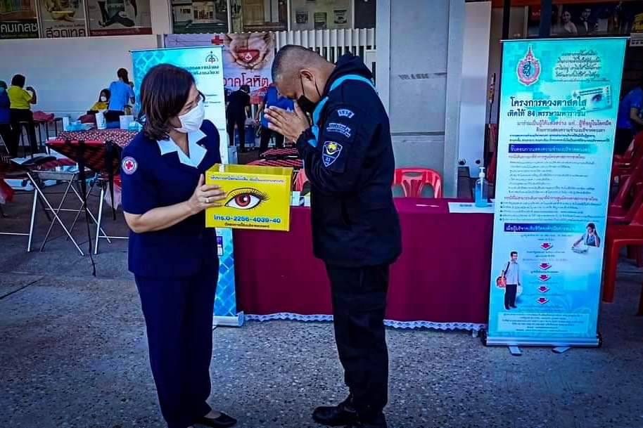 กองกำลังสุรศักดิ์มนตรี โดย กรมทหารพรานที่ 21 ขอเชิญชวนประชาชนร่วมบริจาคดวงตาและอวัยวะร่างกายให้กับศูนย์ดวงตาสภากาชาดไทย ใกล้บ้านได้ทุกจังหวัด โดยศูนย์ดวงตาสภากาชาดไทย มีหน้าที่จัดเก็บและรวบรวมดวงตา จากผู้บริจาคที่เสียชีวิตแล้วด้วยเทคนิคมาตรฐานสากล เพื่อมอบให้จักษุแพทย์นำไปใช้รักษาผู้ป่วยอย่างเท่าเทียมและยุติธรรม ตลอดจนส่งเสริม การให้บริการทางการแพทย์ เพื่อรับบริจาคดวงตาจากผู้มีกุศลจิต และมอบดวงตาและอวัยวะร่างกายที่ผู้บริจาคถึงแก่กรรมแล้วให้จักษุแพทย์ เพื่อนำไปใช้รักษาผู้ป่วยกระจกตาพิการ เนื่องจากในประเทศไทยมีคนตาบอด จำนวนมากที่มีสาเหตุจากโรคของกระจกตา ซึ่งศัพท์ทางการแพทย์เรียกว่า Cornea อันอาจรักษาให้หายหรือทุเลาลงได้โดยการผ่าตัดที่เรียกว่า การผ่าตัดเปลี่ยนกระจกตา หรือ Corneal Transplantation (Keratoplasty) และเป็นศูนย์กลางการประสานงานช่วยเหลือให้ผู้ป่วยกระจกตาพิการได้รับการรักษาโดยจักษุแพทย์ โดยสามารถยื่นความประสงค์บริจาคดวงตาและอวัยวะร่างกาย กับสภากาชาดไทย ใกล้บ้านได้ทุกจังหวัด เนื่องจากสถานการณ์การแพร่ระบาดของโรคโควิด-19 ศูนย์ดวงตาสภากาชาดไทย ขอเชิญชวนผู้มีจิตศรัทธาบริจาคดวงตา ผ่านทางช่องทางออนไลน์ ที่เว็บไซต์ https://eyebankthai.redcross.or.th โดยศูนย์ดวงตาสภากาชาดไทย จะทำการจัดส่งบัตรประจำตัวผู้แสดงความจำนงบริจาคดวงตาและอวัยวะร่างกาย ไปให้ตามที่อยู่ที่ท่านให้ไว้ในระบบ