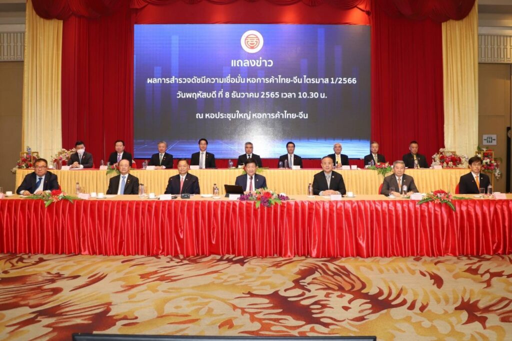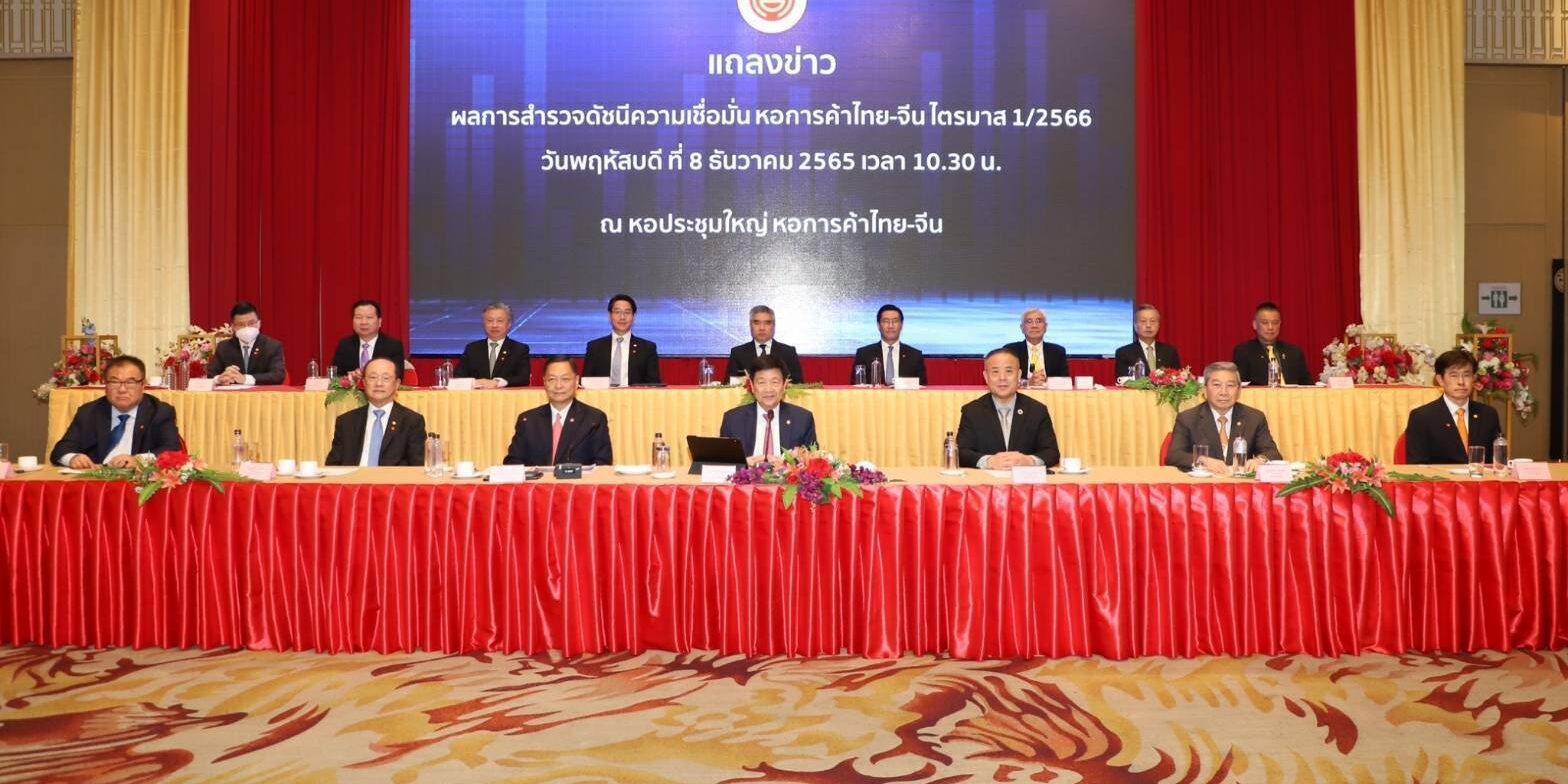 วันที่ 8 ธันวาคม 2565 เวลา 10.30 น.ที่สำนักงานหอการค้าไทย-จีน : นายณรงค์ศักดิ์ พุทธพรมงคล ประธานกรรมการหอการค้าไทย-จีน เปิดเผยว่า หอการค้าไทย-จีน และคณะเศรษฐศาสตร์ จุฬาลงกรณ์มหาวิทยาลัย ได้ทำการสำรวจดัชนีความเชื่อมั่น จาก คณะกรรมการกิตติมศักดิ์ คณะกรรมการบริหาร และสมาชิกหอการค้าไทยจีน และประธาน ผู้บริหาร กรรมการสมาพันธ์หอการค้าไทยจีน และกลุ่มนักธุรกิจรุ่นใหม่หอการค้าไทยจีน จำนวน 200 คน ระหว่างวันที่ 24 พ.ย. ถึง 1 ธันวาคม 2565 เพื่อคาดการณ์ทิศทางเศรษฐกิจในไตรมาสที่ 1 ของปี 2566 ได้ดังนี้