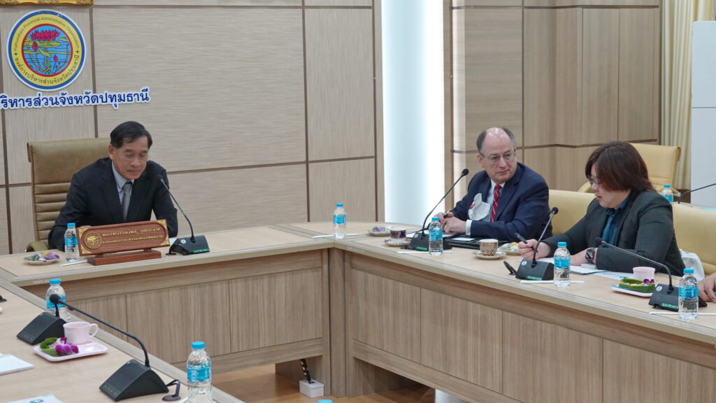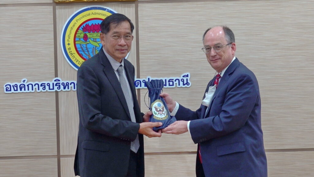โดยมี นางสาวพัชร์อริญ หลีนวรัตน์ รองนายก อบจ.ปทุมธานี , นายสิระพงษ์ สิริโพธินันท์ รองนายก อบจ.ปทุมธานี ,นางรุจศลักษณ์ ธูปกระจ่าง ตั้งวงษ์เลิศ เลขานุการนายก อบจ.ปทุมธานีผู้บริหารและหัวหน้าส่วนราชการ ร่วมให้การต้อนรับคณะเอกอัครราชทูตสหรัฐอเมริกาประจำประเทศไทย ได้ร่วมพูดคุยแสดงความคิดเห็นเกี่ยวกับการเมืองในระดับท้องถิ่นและระดับประเทศ ทางด้านที่ปรึกษาฝ่ายการเมืองที่ปรึกษาฝ่ายการเมือง เอกอัครราชทูตสหรัฐอเมริกาประจำประเทศไทยได้ชื่นชมการบริหารจัดการโควิด-19 ได้เป็นอย่างดี