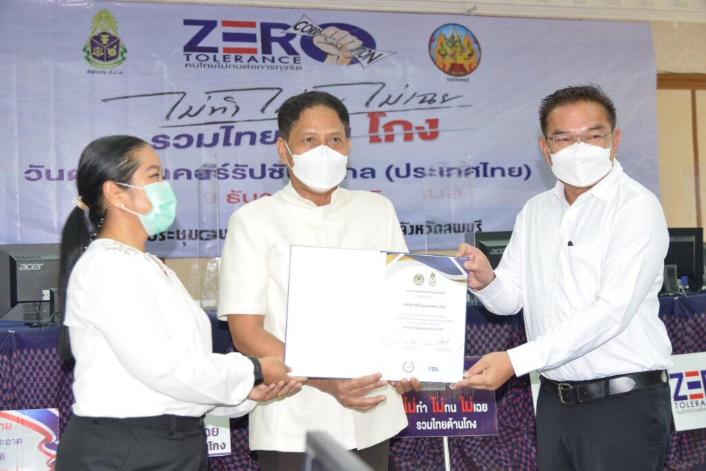 เข้ารับประกาศนียบัตรเชิดชูเกียรติในฐานะเป็นหน่วยงานที่ได้ผลการประเมินคุณธรรมและความโปร่งใสในการดำเนินงานของหน่วยงานภาครัฐ ประจำปีงบประมาณ พ.ศ. 2565 (ITA) ระดับ AA จาก นายวชิระ เกตุพันธ์ รองผู้ว่าราชการจังหวัดลพบุรี เนื่องใน วันต่อต้านคอร์รัปชั่นสากล (ประเทศไทย)