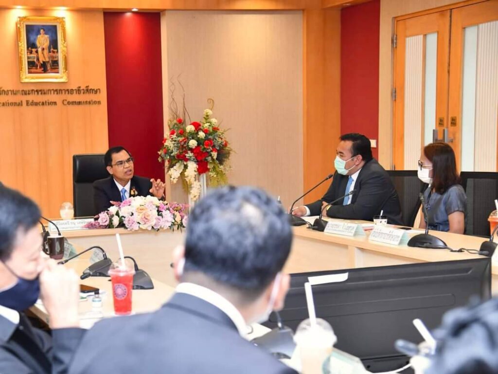 ว่าที่ร้อยตรี ธนุ วงษ์จินดา เลขาธิการคณะกรรมการการอาชีวศึกษา เป็นประธานการประชุมขับเคลื่อนโครงการจัดการศึกษาทวิภาคี รูปแบบพิเศษ ในเขตพื้นที่พิเศษ ภายใต้โครงการกองทุนการศึกษา