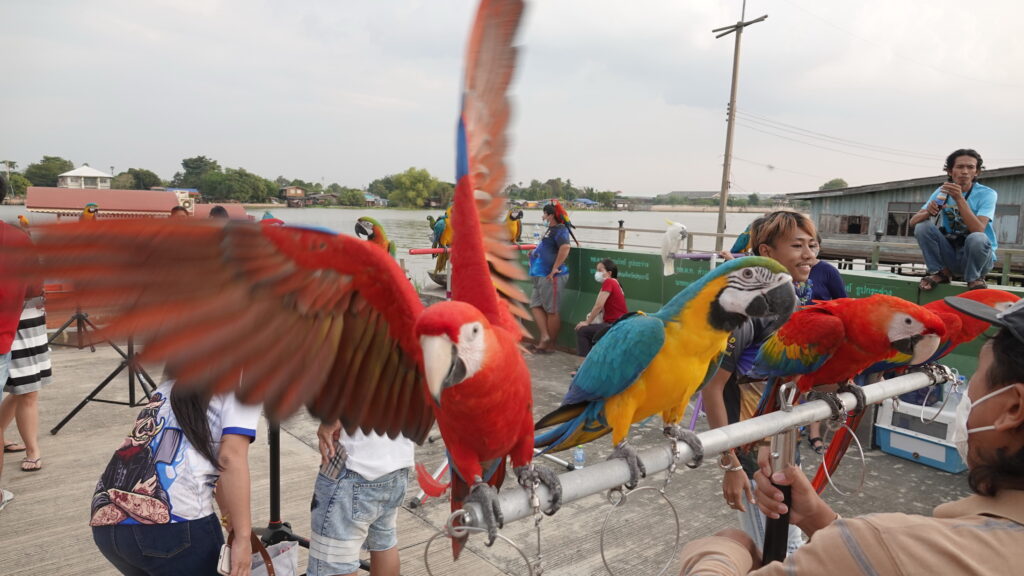 เมื่อเวลา 17.00 น. วันที่ 11 ธันวาคม 2565 ที่มารีน่าแจ๊สคอนโด ตำบลบางโพธิ์ใน อำเภอสามโคก จังหวัดปทุมธานี ร้อยตรีวีระพันธุ์ พุ่มจันทร์ ประธานกลุ่มเลี้ยงนกบินอิสระ ดาร์กมาคอร์ และสมาชิกกลุ่มผู้เลี้ยงนกบินอิสระ ได้นำนกแก้วมาคอร์หลายสีสันมาปล่อยบินอิสระ ที่มีการฝึกฝนให้นกได้ออกโบยบินในพื้นที่กว้างได้อย่างอิสระและสามารถกลับมาหาผู้เลี้ยง หรือกลับมาตามคำสั่งของเจ้าของได้ คล้ายกับการฝึกสุนัขให้ทำตามสั่ง