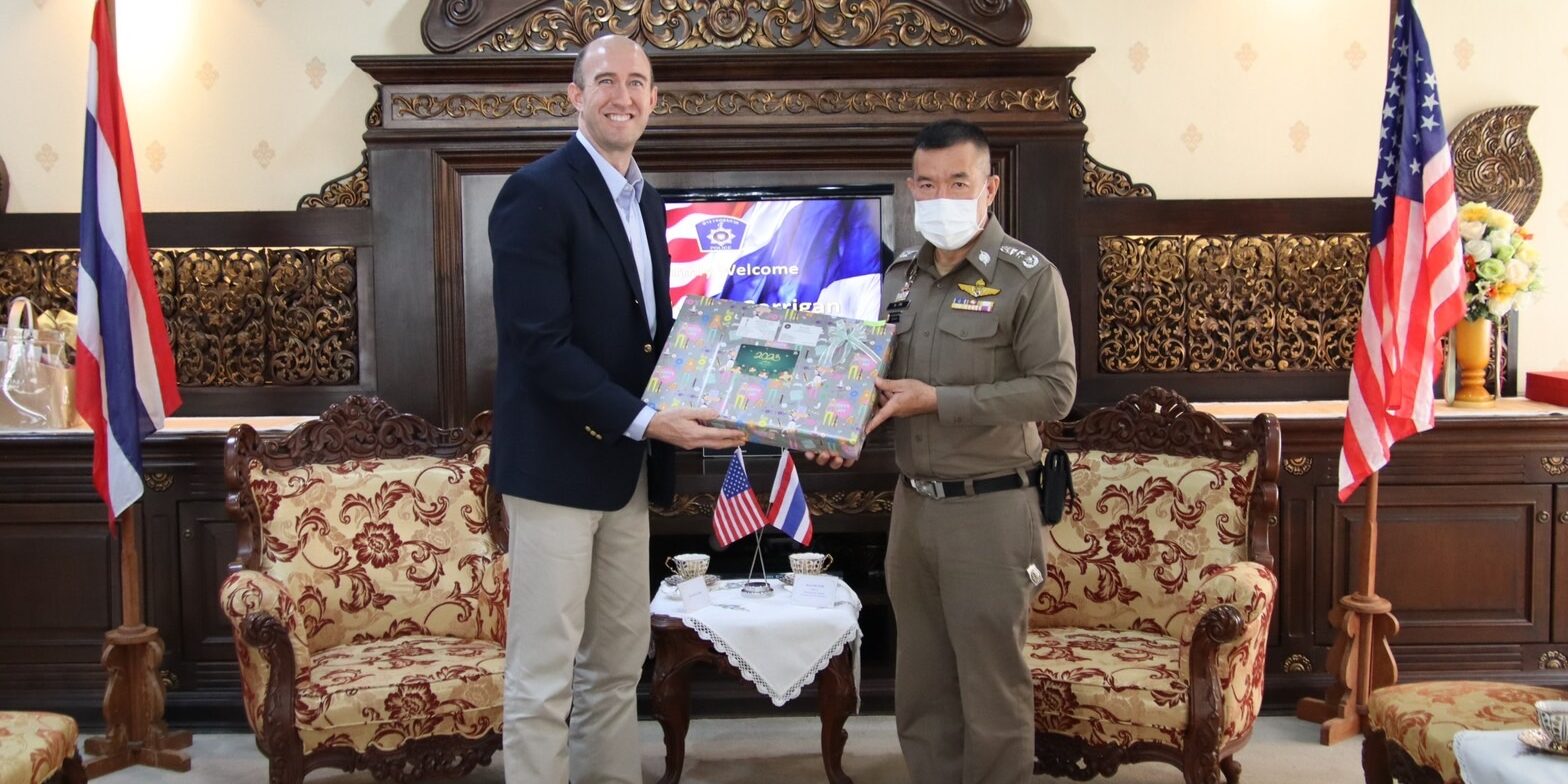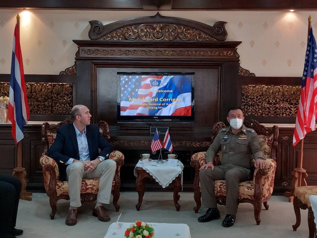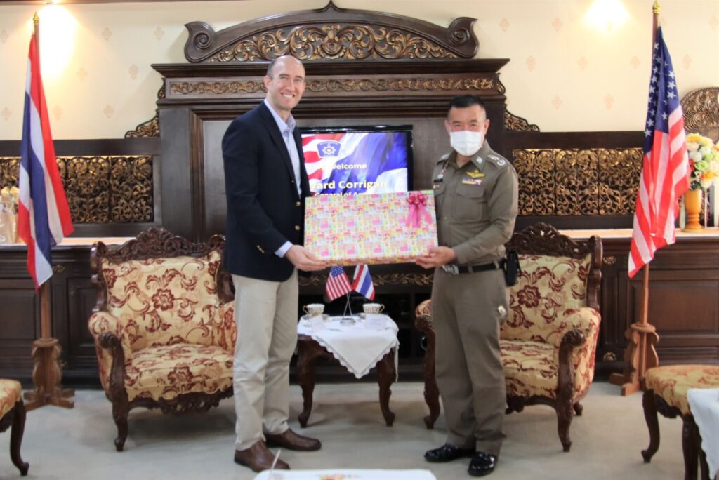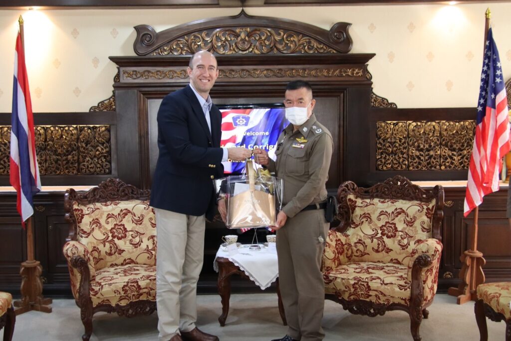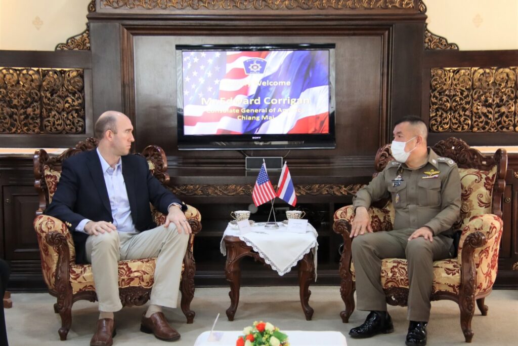 พล.ต.ท.ปิยะ ต๊ะวิชัย ผบช.ภ.5 ให้การต้อนรับ Mr.Edward Corigan หัวหน้าสำนักงานฝ่ายกิจการภูมิภาค สถานกงสุลใหญ่สหรัฐอเมริกา เชียงใหม่ และคณะ เนื่องในโอกาสเข้าเยี่ยมคารวะในวันคริสต์มาส และปีใหม่ พร้อมกันนี้ทั้งสองฝ่ายได้มอบของที่ระลึกเพื่อเป็นการแสดงไมตรีจิตที่ดีต่อกัน ณ ห้องรับรอง ตำรวจภูธรภาค 5 อ.เมือง จว.เชียงใหม่