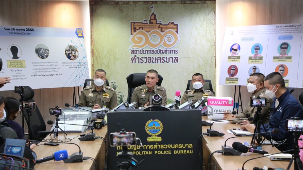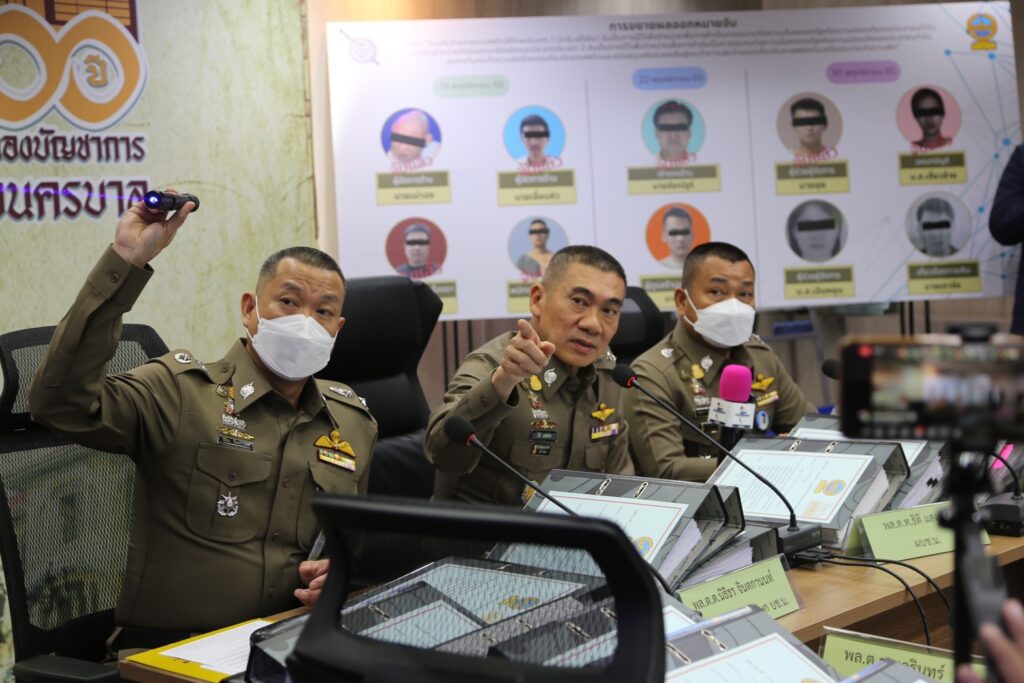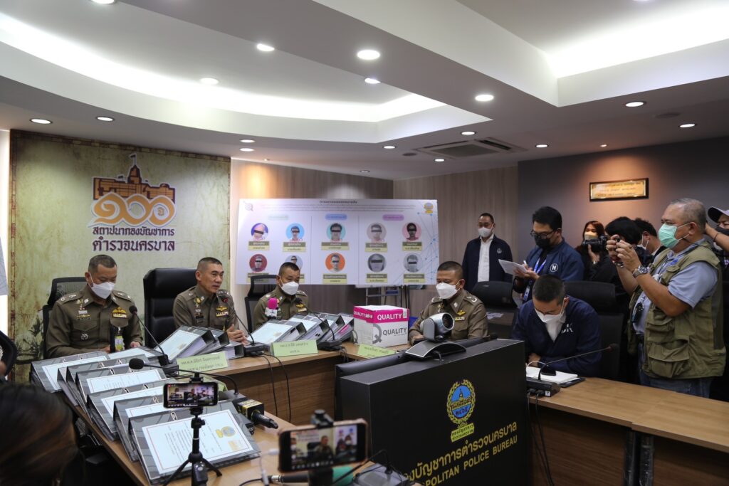 วันที่ 14 พฤศจิกายน 2565 ทำการออกหมายจับผู้ต้องหาจำนวน 4 ราย จับกุมได้ 4 ราย Mr.Wang Jianhua อายุ 34 ปี (จับแล้ว),Mr.Huang Haitao อายุ 39 ปี (จับแล้ว),Mr.Jiang Dailin อายุ 30 ปี (จับแล้ว) และ Mr.Mao Yaxiong อายุ 41 ปี (จับแล้ว)