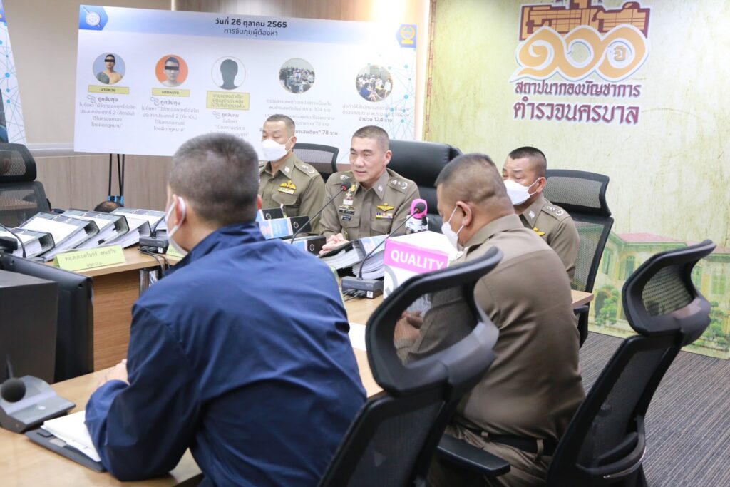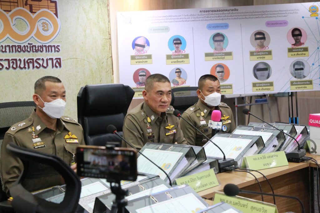 วันที่ 22 พฤศจิกายน 2565 ทำการออกหมายจับผู้ต้องหาจำนวน 2 ราย จับกุมได้ 1 ราย นายชัยณัฐร์ (สงวนนามสกุล) อายุ 48 ปี (จับแล้ว) และ Mr.Yang Chen อายุ 37 ปี (อยู่ระหว่างจับกุม)