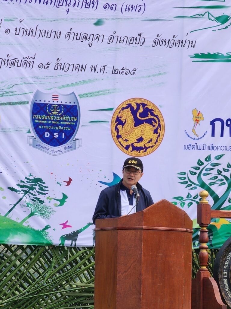 อธิบดีกรมสอบสวนคดีพิเศษ กล่าวว่า กรมสอบสวนคดีพิเศษได้รับเรื่องร้องเรียนจากเครือข่ายภาคประชาชน ว่ามีความขัดแย้งในพื้นที่ต้นน้ำปางยาง อำเภอปัว จังหวัดน่าน จึงได้ตั้งคณะทำงานสืบสวนเรื่องดังกล่าว และไม่พบว่ามีการกระทำความผิดที่เป็นคดีพิเศษ จึงได้ยุติการสืบสวน แต่ปัจจุบันยังพบว่ามีปัญหาความขัดแย้ง จึงได้นำแนวทางโครงการอำนวยความเป็นธรรมด้านสิทธิมนุษยชนและสิทธิชุมชน ตามนโยบายยุติธรรมสร้างสุขเข้ามาแก้ไขปัญหา โดยมอบหมายให้ นายอังสุเกติ์ วิสุทธิ์วัฒนศักดิ์ ผู้อำนวยการศูนย์ป้องกันและปราบปรามหนี้นอกระบบและอำนวยความยุติธรรม ดำเนินโครงการฯ และให้บูรณาการความร่วมมือกับหน่วยงานภาครัฐ ได้แก่ อำเภอปัว อุทยานแห่งชาติดอยภูคา โครงการหลวง นักวิชาการ และหน่วยงานต่างๆ ที่เกี่ยวข้อง โครงการฯ ได้ดำเนินการจนเกิดผล เป็นรูปธรรม มีการคืนพื้นที่ป่า 300 ไร่ เกษตรกรที่คืนพื้นที่ป่า ได้รับการปรับปรุงที่ดินทำกิน เป็นแปลงนาขั้นบันได ได้รับการส่งเสริมการปลูกไม้ผล และปศุสัตว์