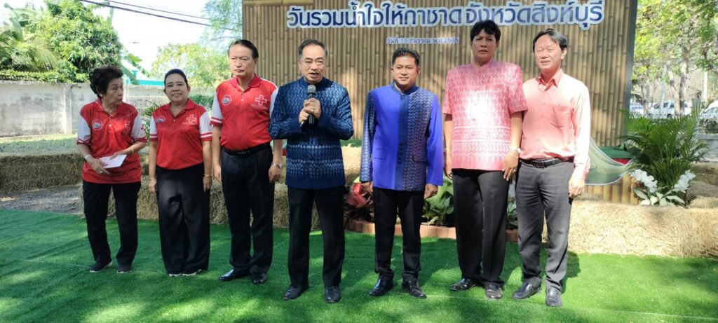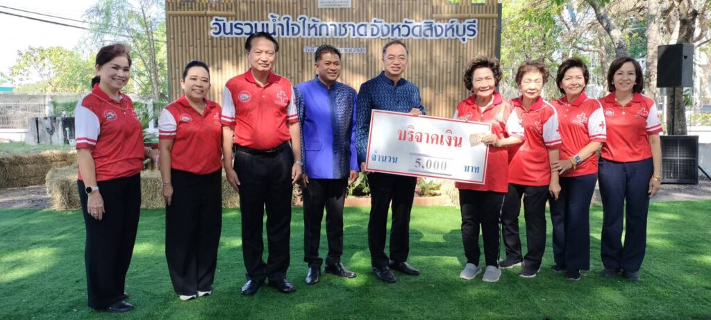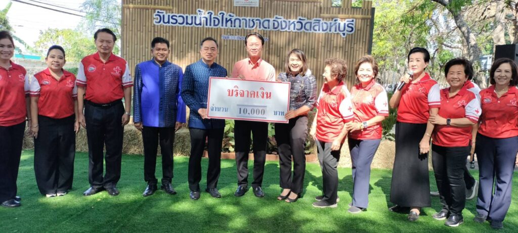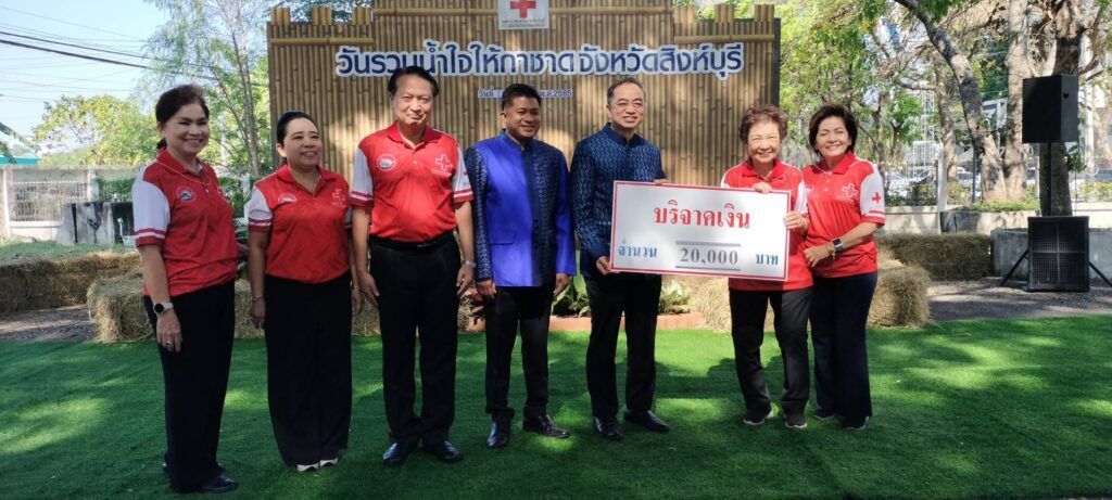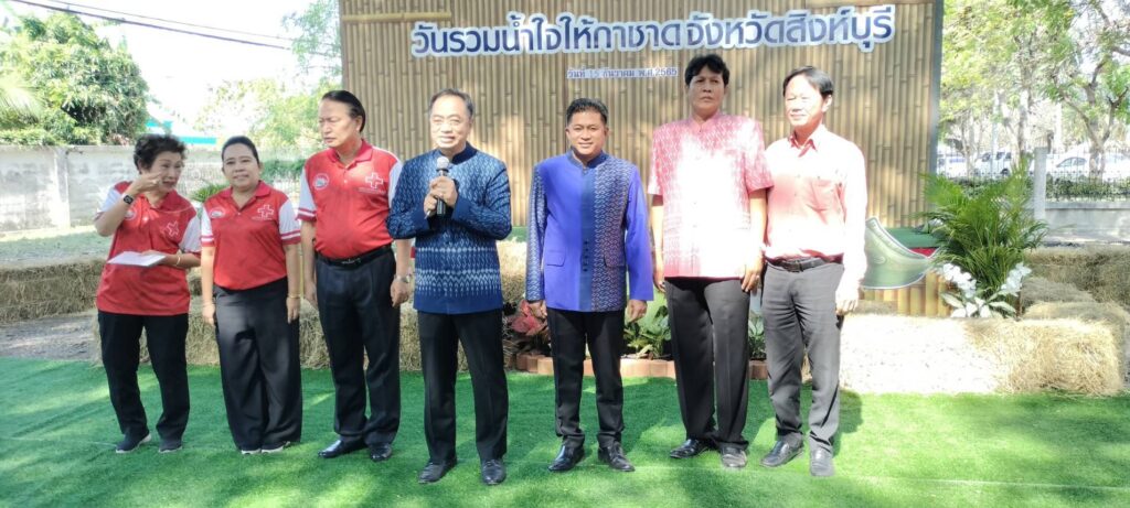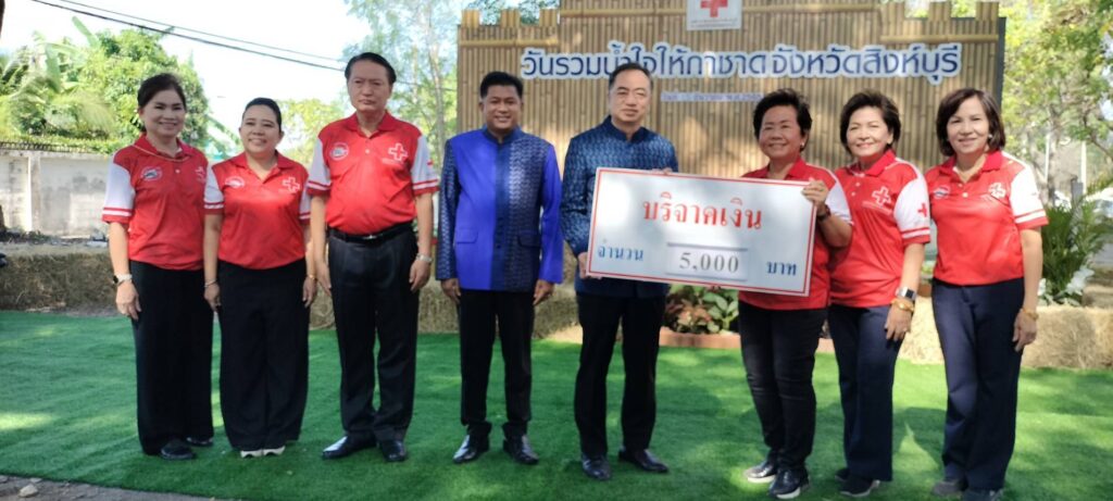 วันพฤหัสบดีที่ 15 ธันวาคม 2565 เวลา 10.00 น. นายสุพจน์ ยศสิงห์คำ ผู้ว่าราชการจังหวัดสิงห์บุรี/นายกเหล่ากาชาดจังหวัดสิงห์บุรี นายสัมฤทธิ์ กองเงิน นายสมชาย ลีหล้าน้อย รองผู้ว่าราชการจังหวัดสิงห์บุรี นางจิราภรณ์ กองเงิน รองนายกเหล่ากาชาดจังหวัดสิงห์บุรี นางภรณี ธนาคมานุสรณ์ กรรมการเหล่ากาชาดจังหวัดสิงห์บุรีและสมาชิกเหล่ากาชาดจังหวัดสิงห์บุรี รับมอบเงินบริจาค จากส่วนราชการ รัฐวิสาหกิจ องค์กรปกครองส่วนท้องถิ่น ภาคเอกชน และประชาชนผู้มีจิตศรัทธา ในงาน”วันรวมน้ำใจให้กาชาดจังหวัดสิงห์บุรี” ณ สำนักงานเหล่ากาชาดจังหวัดสิงห์บุรี ร่วมยอดเงินบริจาคทั้งหมด 417,140 บาท เพื่อนำรายได้ไปใช้จ่ายในการดำเนินงานช่วยเหลือผู้ประสบสาธารณภัย ผู้ยากไร้ ผู้พิการ ผู้สูงอายุ และผู้ด้อยโอกาสในพื้นที่จังหวัดสิงห์บุรี ให้มีความเป็นอยู่และมีคุณภาพชีวิตที่ดีขึ้น ซึ่งผู้บริจาคสามารถนำใบเสร็จรับเงินไปลดหย่อนภาษีได้