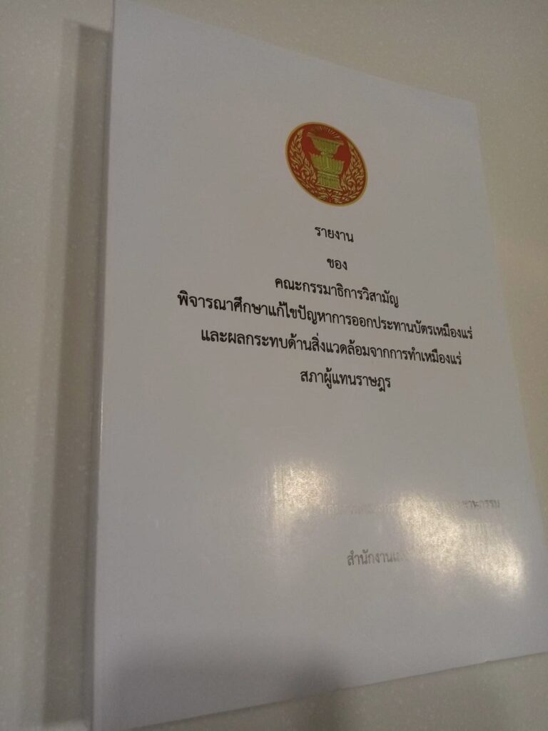 รายงานผลการศึกษาของคณะกรรมาธิการวิสามัญ “ พิจารณาศึกษาแก้ไขปัญหาการออกประทานบัตรเหมืองแร่ และผลกระทบสิ่งแวดล้อมจากการทำเหมืองแร่ “