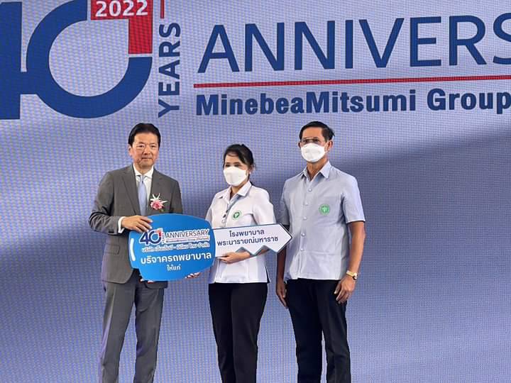 เมื่อวันที่ 14 ธันวาคม 2565 แพทย์หญิงนุชรินทร์ อักษรดี ผู้อำนวยการโรงพยาบาลพระนารายณ์มหาราชพร้อมคณะผู้บริหารประกอบด้วย แพทย์หญิงหทัยรัตน์ อัจจิมานนท์ รองผู้อำนวยการฝ่ายการแพทย์ คุณธภัทร ติระวัฒน์ รองผู้อำนวยการฝ่ายบริหาร นายแพทย์พงศกร ฉ่ำพึ่ง รับมอบรถพยาบาล (รถตู้) Ambulance จากบริษัท เอ็นเอ็มบี – มินีแบไทย จำกัด เป็นจำนวน 2 คัน มูลค่ารวม 4,970,000 บาท เนื่องในโอกาสครบรอบ 40 ปี บริษัทเอ็นเอ็มบี – มินีแบไทยจำกัด