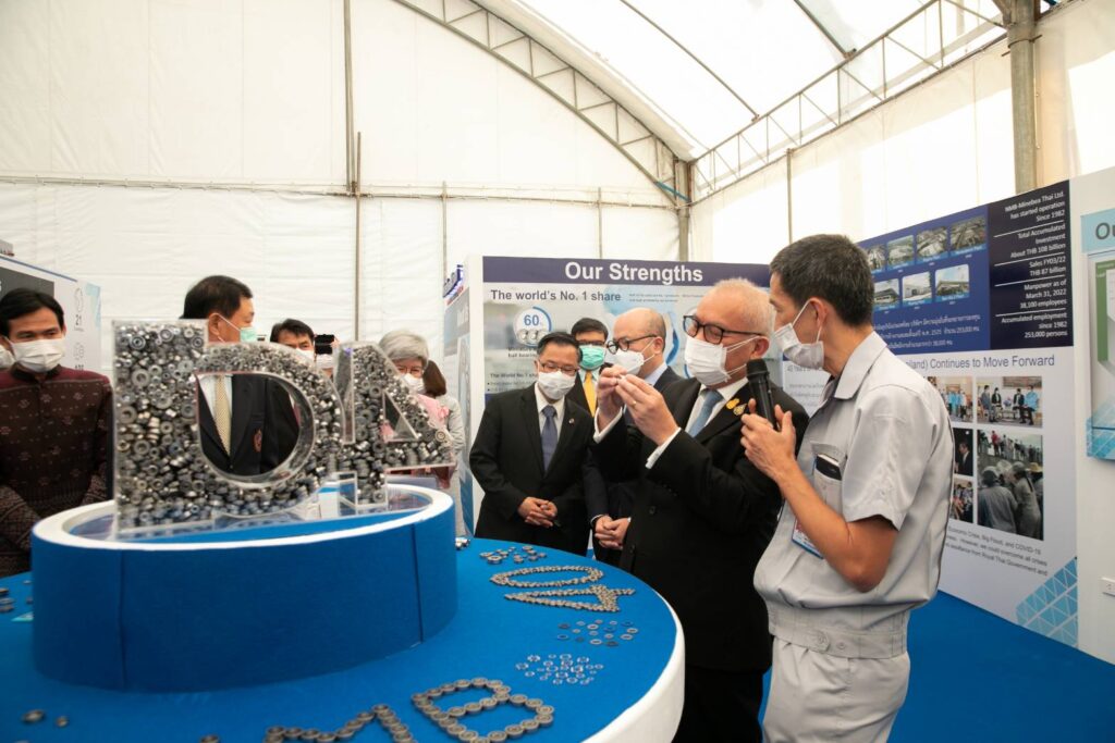 และในโอกาสนี้ นายโยชิฮิสะ ไคนูมะ ประธานกลุ่มบริษัท มินีแบมิตซูมิ ได้กล่าวถึง ความเป็นมาของกลุ่มบริษัท และการดำเนินกิจการในประเทศไทย คือ กลุ่มบริษัท มินีแบมิตซูมิ ก่อตั้งที่ประเทศญี่ปุ่น ปี พ.ศ.2494 มีการขยายการลงทุนและฐานการผลิตมาที่ประเทศไทย ปี พ.ศ.2525 ปัจจุบันดำเนินธุรกิจมาครบ 40 ปี ซึ่งถือเป็นฐานการ ผลิตที่ใหญ่ที่สุด บริษัทฯ มีการขยายการลงทุน และกำลังการผลิตอย่างต่อเนื่อง มียอดเงินลงทุนสะสม ณ เดือนมีนาคม 2565 มากกว่า 108,000 ล้านบาท มีโรงงานผลิต 9 แห่ง ตั้งอยู่ในจังหวัดพระนครศรีอยุธยา,ลพบุรี,ปทุมธานี,ชลบุรี และระยอง ปัจจุบันมีพนักงานจำนวนมากกว่า 38,000 คน มีการจ้างงานสะสมตั้งแต่ปี พ.ศ.2525 จำนวน 253,000 คน ด้วยยอดขายมากกว่า 87,000 ล้านบาท