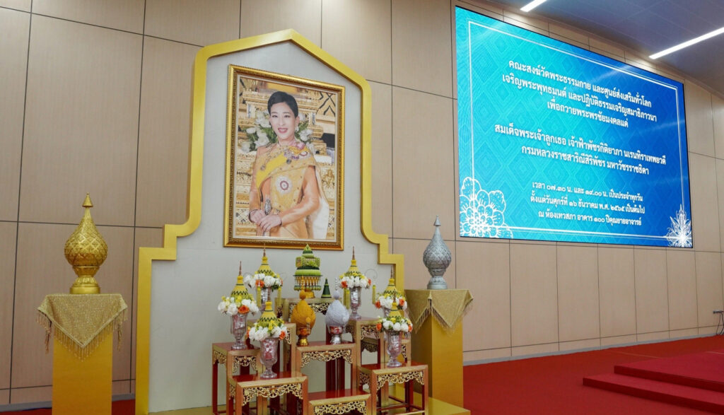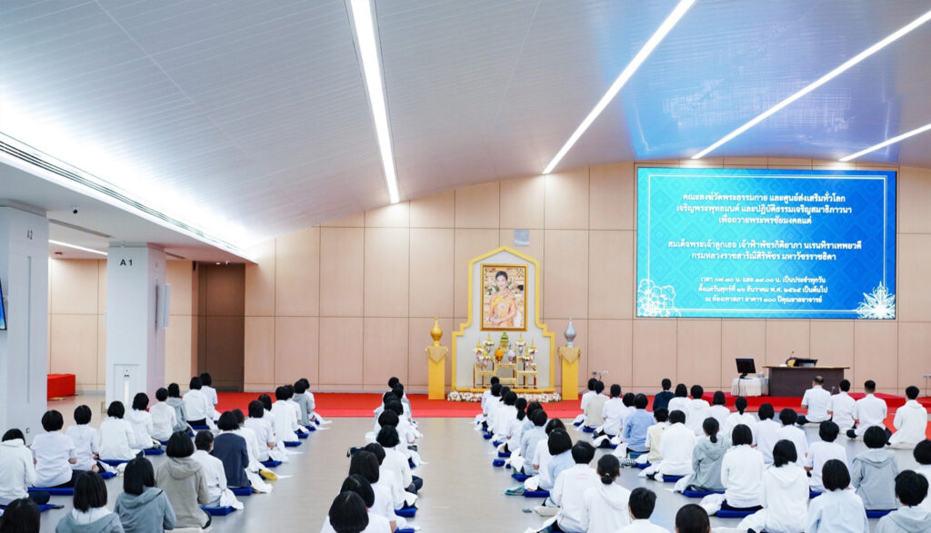 วันที่ 17 ธันวาคม 2565 พระครูสมุห์สนิทวงศ์ วุฑฺฒิวํโส ผู้อำนวยการสำนักสื่อสารองค์กร วัดพระธรรมกาย จังหวัดปทุมธานี กล่าวว่า วัดพระธรรมกาย โดยคณะสงฆ์ อุบาสก และอุบาสิกา ได้จัดพิธีเจริญพระพุทธมนต์ และปฏิบัติธรรมเจริญสมาธิภาวนา ตั้งแต่วันที่ 16 ธันวาคมที่ผ่านมา เพื่อถวายพระพรชัยมงคลแด่ สมเด็จพระเจ้าลูกเธอ เจ้าฟ้าพัชรกิติยาภา นเรนทิราเทพยวดี กรมหลวงราชสาริณีสิริพัชร มหาวัชรราชธิดา ณ ห้องเทวสภา อาคาร 100 ปี คุณยายอาจารย์มหารัตนอุบาสิกาจันทร์ ขนนกยูง วัดพระธรรมกาย จังหวัดปทุมธานี โดยจัดเป็นประจำทุกวันๆละ 2 เวลาคือ 07.30 น. และ 19.00 น.