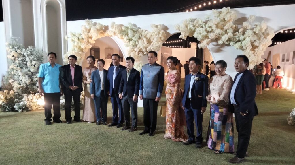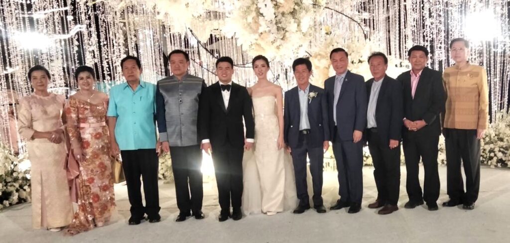 โดยมี ท่าน อนุทิน ชาญวีรกุล รองนายกรัฐมนตรี และรัฐมนตรีว่าการ กระทรวงสาธารณสุขให้เกียรติมาเป็นประธาน ในพิธีมงคลสมรส พร้อมด้วย คณะสมาชิกสภาผู้แทนราษฎร พรรคภูมิใจไทย อีกหลายท่าน
