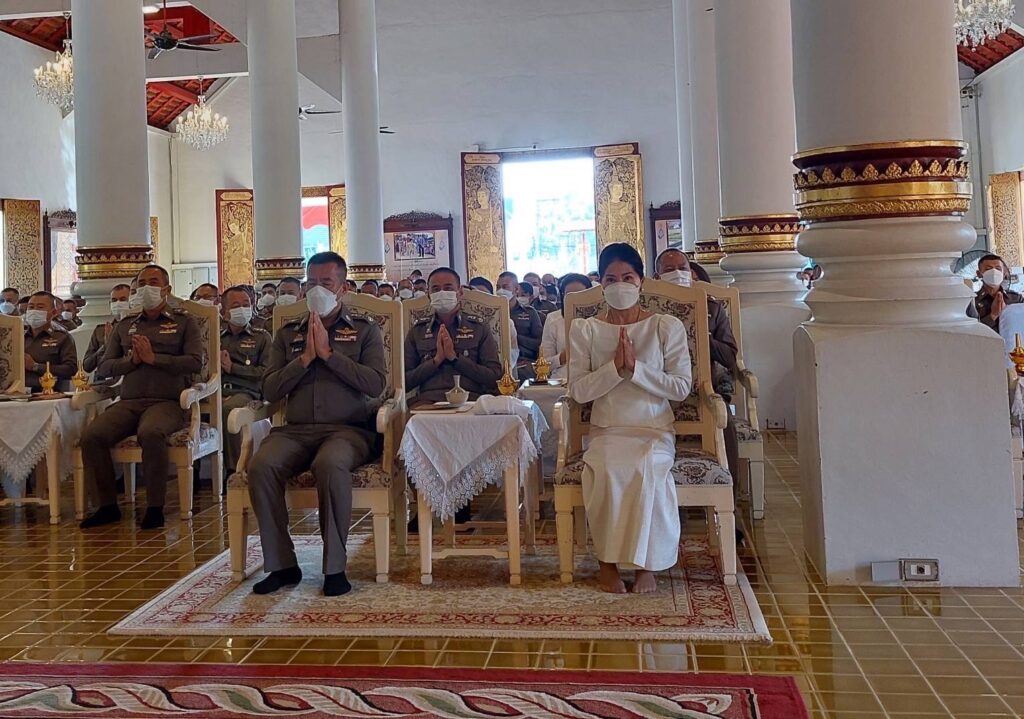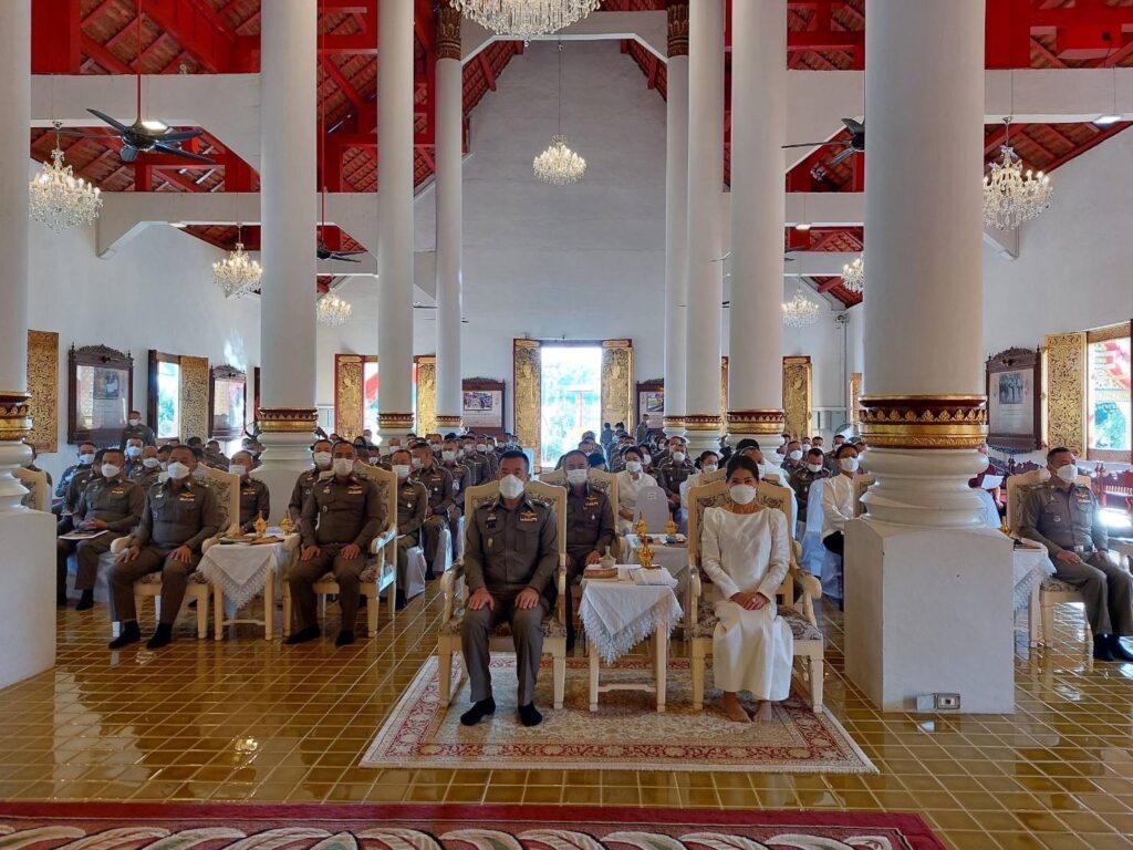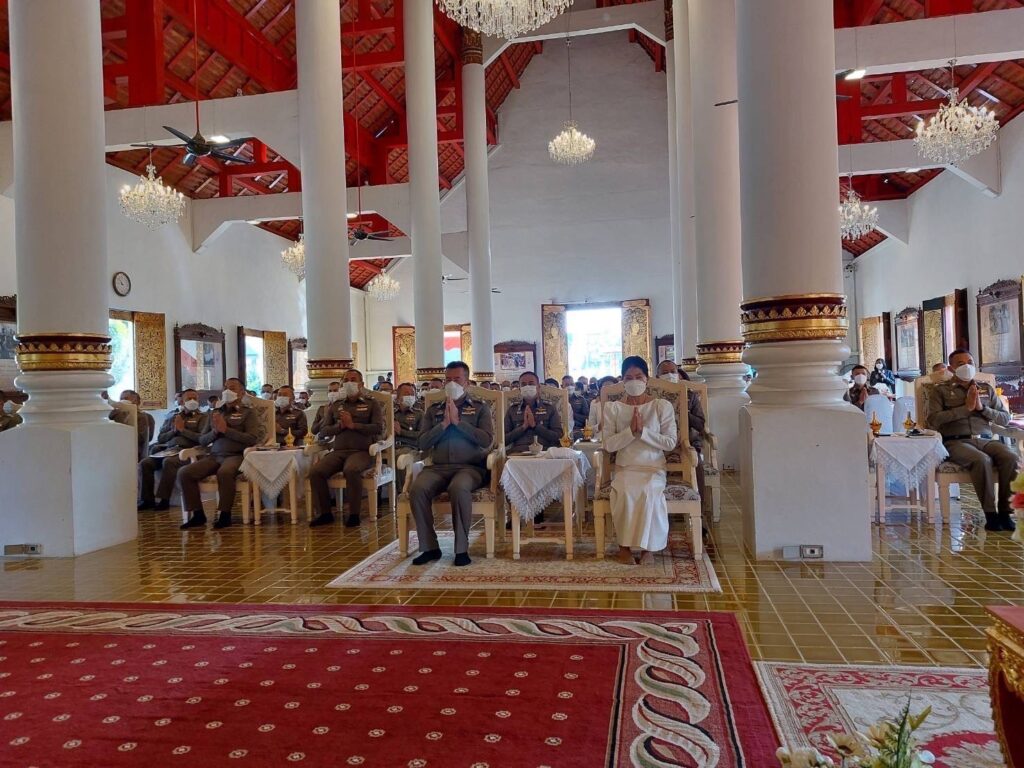 วันนี้ (19 ธ.ค.65) เวลา 08.45 น. พล.ต.ท.ปิยะ ต๊ะวิชัย ผบช.ภ.5 พร้อมด้วย พล.ต.ต.กฤตธาพล ยี่สาคร รอง ผบช.ภ.5, พล.ต.ต.พิเชษฐ จีระนันตสิน รอง ผบช.ภ.5, พล.ต.ต.วีระชน บุญทวี รอง ผบช.ภ.5, พล.ต.ต.นพดล กรึงไกร รอง ผบช.ภ.5, พล.ต.ต.ธวัชชัย พงษ์วิวัฒนชัย ผบก.ภ.จว.เชียงใหม่, พล.ต.ต.มานพ เสนากูล ผบก.อก.ภ.5, พล.ต.ต.ศักดิ์ชัย พวงสมบัติ ผบก.กค.ภ.5, รอง ผบก.ภ.จว.เชียงใหม่, รอง ผบก.กค.ภ.5, ข้าราชการตำรวจ สภ.เมืองเชียงใหม่, กก.สส.ภ.5, กลุ่มงานจราจร, ฝอ.ภ.จว.เชียงใหม่, กต.ตร. พร้อม คุณพิยดา ต๊ะวิชัย ประธานชมรมแม่บ้านตำรวจภูธรภาค5 นำข้าราชการตำรวจ และแม่บ้านตำรวจ ร่วมพิธีเจริญพระพุทธมนต์ถวายเป็นพระราชกุศลแด่ สมเด็จพระเจ้าลูกเธอ เจ้าฟ้าพัชรกิติยาภา นเรนทิราเทพยวดี กรมหลวงราชสาริณีสิริพัชร มหาวัชรราชธิดา ณ วัดพระสิงห์วรมหาวิหาร อ.เมือง จว.เชียงใหม่ เพื่อเป็นการแสดงความจงรักภักดีและสำนึกในพระมหากรุณาธิคุณ ถวายพระพรให้พระองค์ทรงหายจากพระอาการประชวรในเร็ววัน