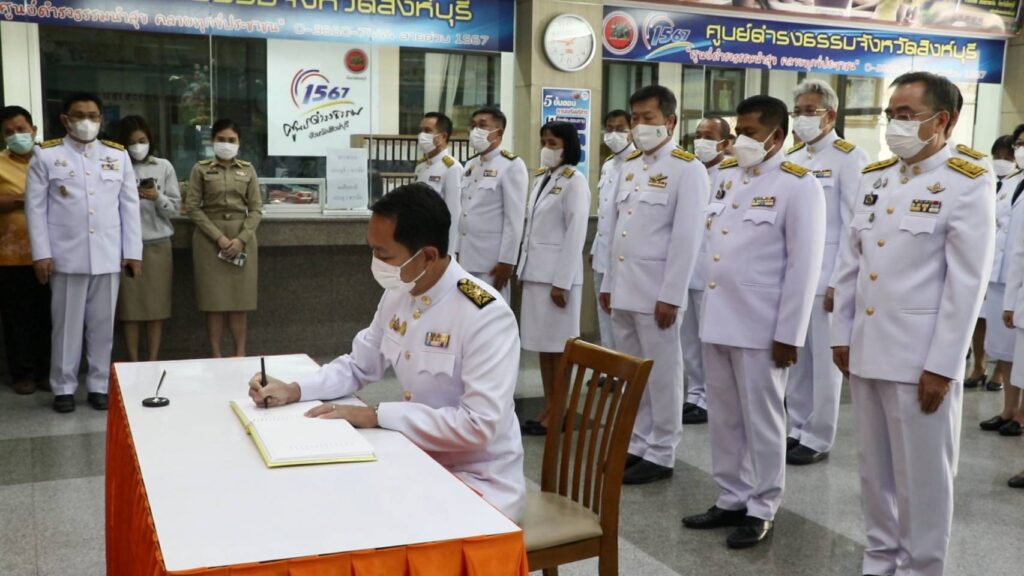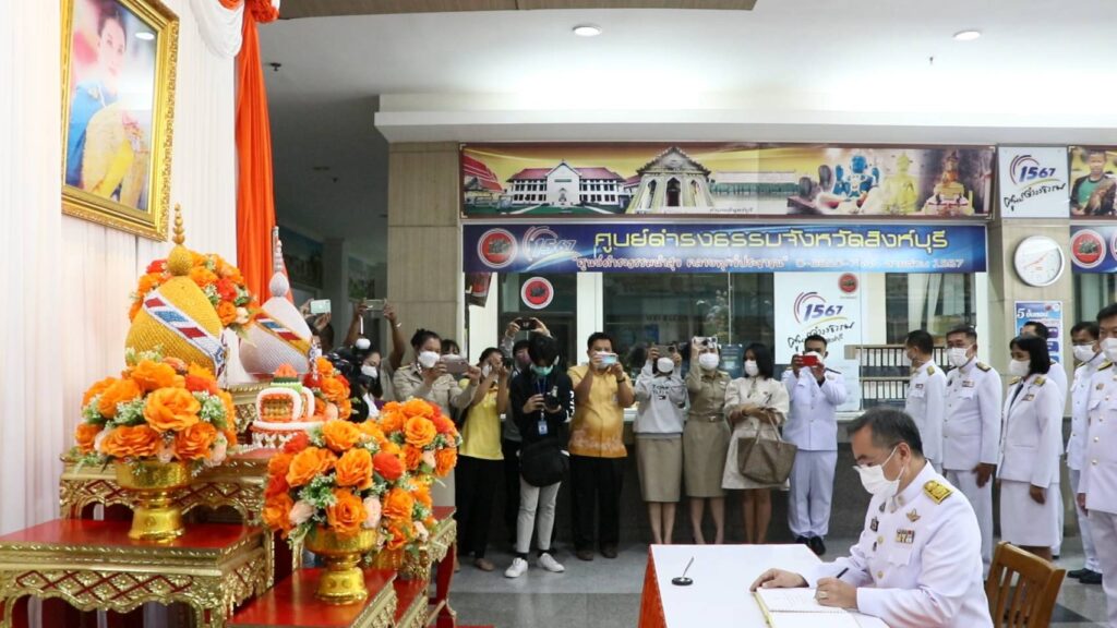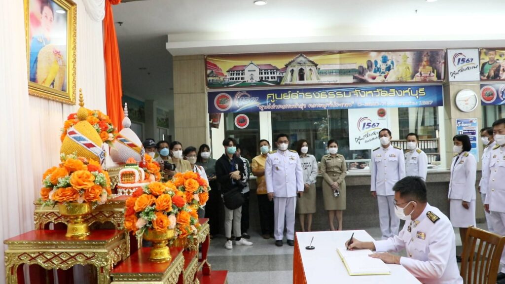วันจันทร์ที่ 19 ธันวาคม 2565 เวลา 13.30 น.นายสุพจน์ ยศสิงห์คำ ผู้ว่าราชการจังหวัดสิงห์บุรี เป็นประธานในพิธีลงนามถวายพระพรชัยมงคล สมเด็จพระเจ้าลูกเธอ เจ้าฟ้าพัชรกิติยาภา นเรนทิราเทพยวดี กรมหลวงราชสาริณีสิริพัชร มหาวัชรราชธิดา ณ บริเวณห้องโถงชั้น 1 ศาลากลางจังหวัดสิงห์บุรี โดยมีหัวหน้าศาล รองผู้อำนวยการรักษาความมั่นคงภายในจังหวัดสิงห์บุรี รองผู้ว่าราชการจังหวัดสิงห์บุรี นายอำเภอทุกอำเภอ ตำรวจ ทหาร หัวหน้าส่วนราชการ องค์กรปกครองส่วนท้องถิ่น ข้าราชการ พสกนิกรทุกหมู่เหล่าร่วมลงนามถวายพระพร สมเด็จพระเจ้าลูกเธอ เจ้าฟ้าพัชรกิติยาภา นเรนทิราเทพยวดี กรมหลวงราชสาริณีสิริพัชร มหาวัชรราชธิดา ขอทรงหายจากพระอาการประชวรและมีพระพลานามัยสมบูรณ์แข็งแรงโดยเร็ววัน