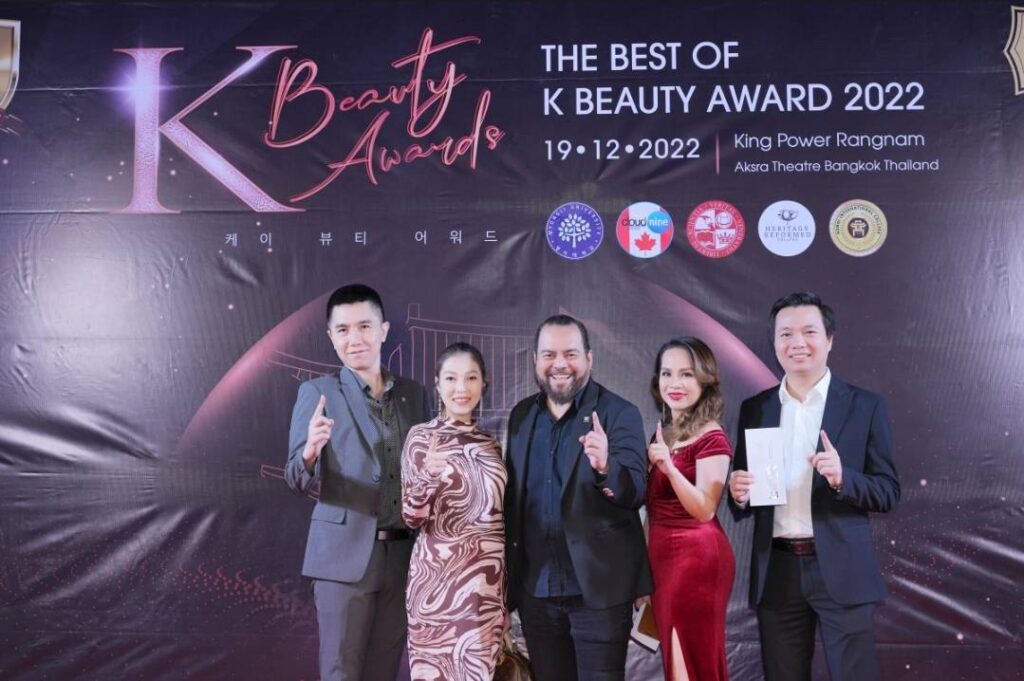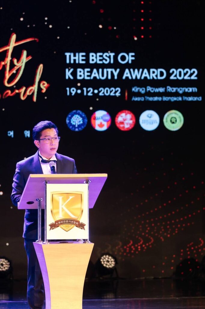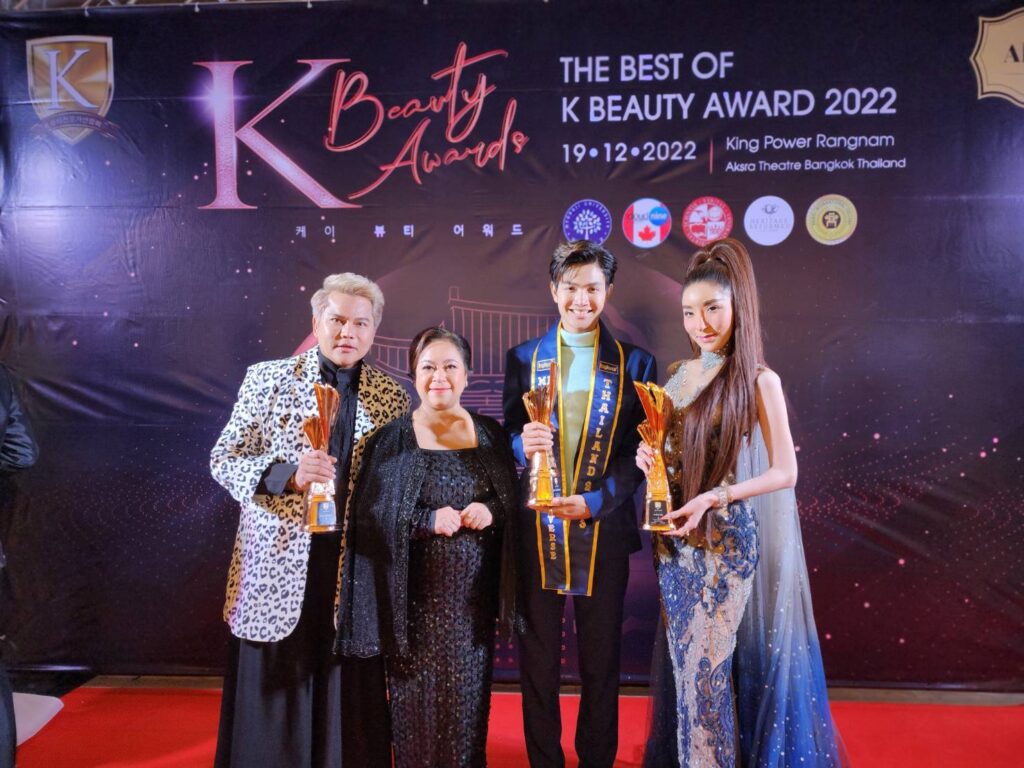 ครั้งแรกในเอเชียกับพิธีมอบถ้วยเชิดชูเกียรติ รางวัล K Beauty Awards 2022 ถ้วยรางวัลที่แสดงถึงความภาคภูมิใจในงานด้านสังคม การศึกษา อาชีพ และธุรกิจในด้านต่างๆ จัดโดย THE FEDERATION OF K – BEAUTY PROFESSIONAL THAILAND นำโดย คุณวีรวิชญ์ ชัยคณาพิบูลย์ ประธาน K-Beauty ประจำประเทศไทย