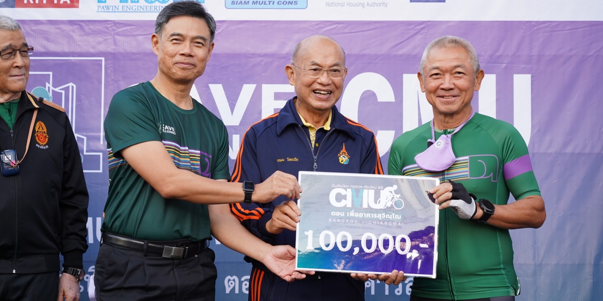 @@@โดยมีการจัดพิธีปล่อยขบวนจักรยาน ซึ่งประกอบด้วยนักปั่นจักรยานซึงเป็นนักศึกษาเก่า มหาวิทยาลัยเชียงใหม่ จำนวน 30 คน ออกเดินทางปั่นจากโตโยต้า บัสส์ วิภาวดี กรุงเทพมหานคร โดยมี ศาสตราจารย์เกียรติคุณ นายแพทย์เกษม วัฒนชัย องคมนตรี และนายกสภามหาวิทยาลัยเชียงใหม่ เป็นประธานในพิธีปล่อยขบวนจักรยาน พร้อมด้วย ศาสตราจารย์ ดร.นายแพทย์พงษ์รักษ์ ศรีบัณฑิตมงคล อธิการบดีมหาวิทยาลัยเชียงใหม่ พลเอก นินนาท เบี้ยวไข่มุก และ นายสมยศ วงษ์ทองสาลี ประธานโครงการฯ เมื่อวันอาทิตย์ที่ 18 ธันวาคมที่ผ่านมา ซึ่งขบวนจักรยานนี้จะปั่นผ่าน ไปยังจังหวัดลพบุรี นครสวรรค์ พิษณุโลก อุตรดิตถ์ แพร่ ลำปาง และสิ้นสุดมหาวิทยาลัยเชียงใหม่ รวมระยะทาง 830 กิโลเมตร ในวันเสาร์ที่ 24 ธันวาคม